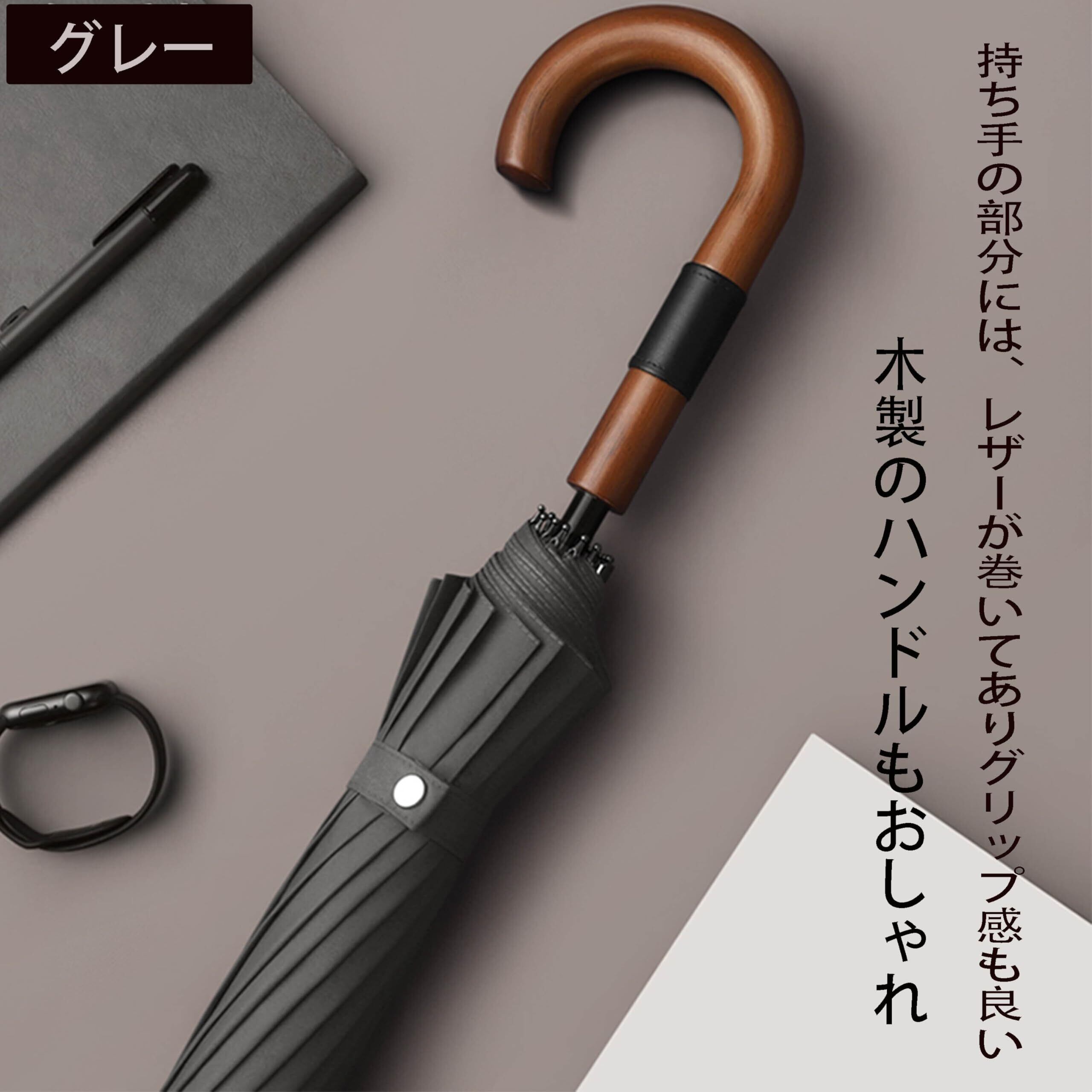 Aiyoupin傘 メンズ おしゃれ 125cm 長傘 大き 雨傘 紳士傘 16本骨 耐風 耐水 悪天候 高強度グラスファイバー J木製ハンドル 傘 軽量 メンズ ワンクリックで開く 男女兼用