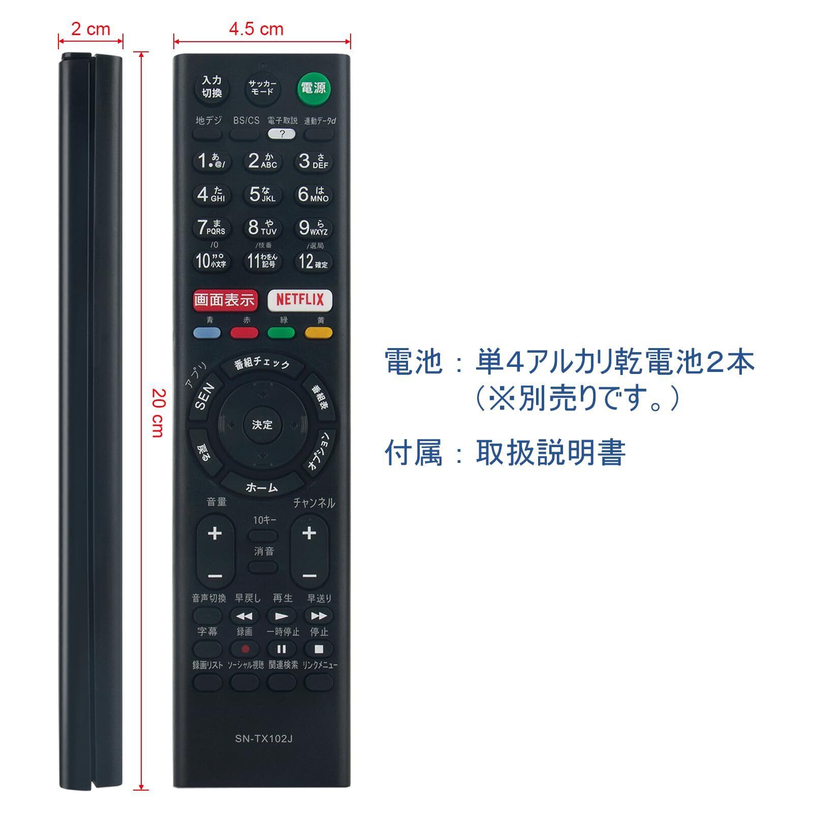 PerFascin 代替リモコン RMT-TX102J FITS FOR ソニー SONY ブラビア BRAVIA テレビ KJ-32W700C KJ-40W700C KJ-48W730C KJ-40W730C KJ-32W730C KJ-48W700C