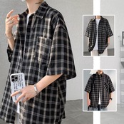 【在庫セール】[Bligo] シャツ メンズ 半袖 夏服 L-5XL チェック柄 ゆったり カジュアル 柔らかい 快適 カジュアル オシャレ シンプル 人気 胸ポケット ドロップショルダー トップス 大きいサイズ 韓国風 通気 普段着 | allstore3