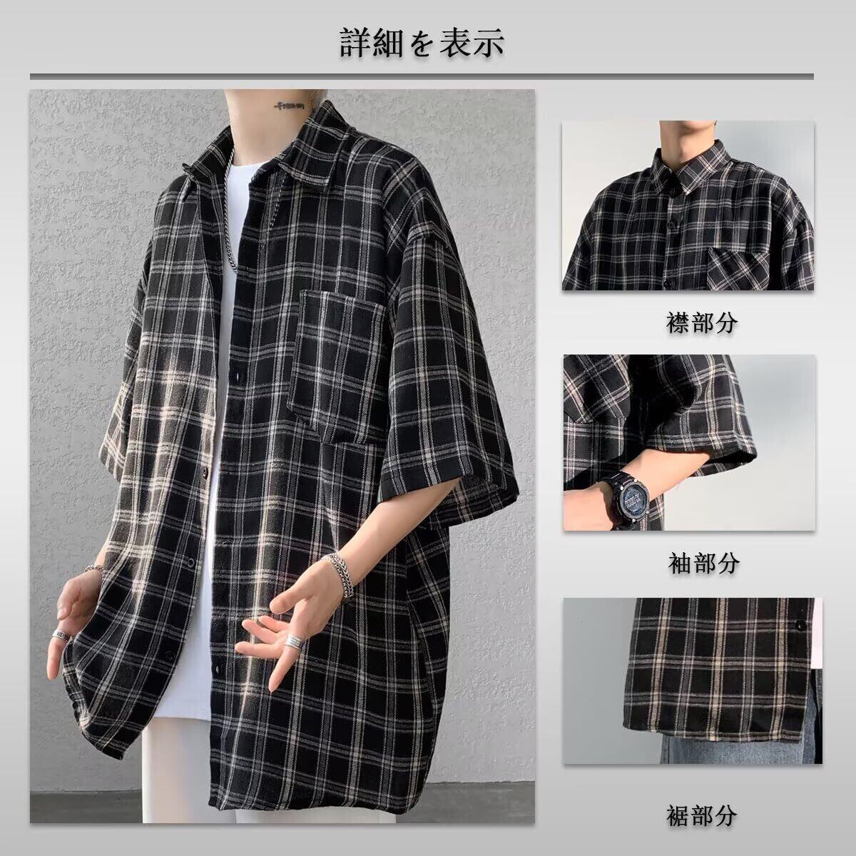 【在庫セール】[Bligo] シャツ メンズ 半袖 夏服 L-5XL チェック柄 ゆったり カジュアル 柔らかい 快適 カジュアル オシャレ シンプル 人気 胸ポケット ドロップショルダー トップス 大きいサイズ 韓国風 通気 普段着