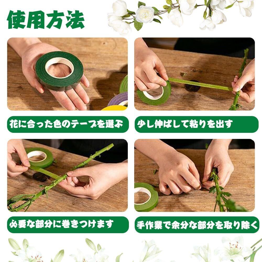 [幅広い用途]:このテープは、花束、ギフトボックスの包装、スクラップブッキングの装飾や花のDIY制作に使用することができ、自宅や屋外の両方で使用することができ、花のDIY初心者や花屋の労働者に大きな利便性を提供します