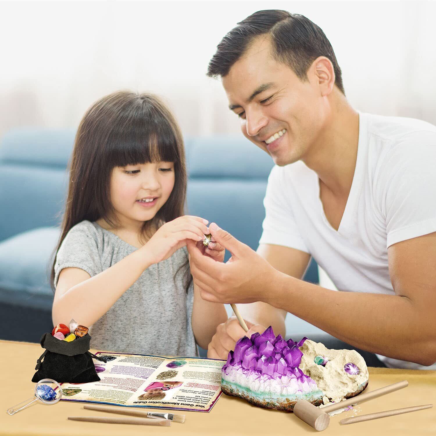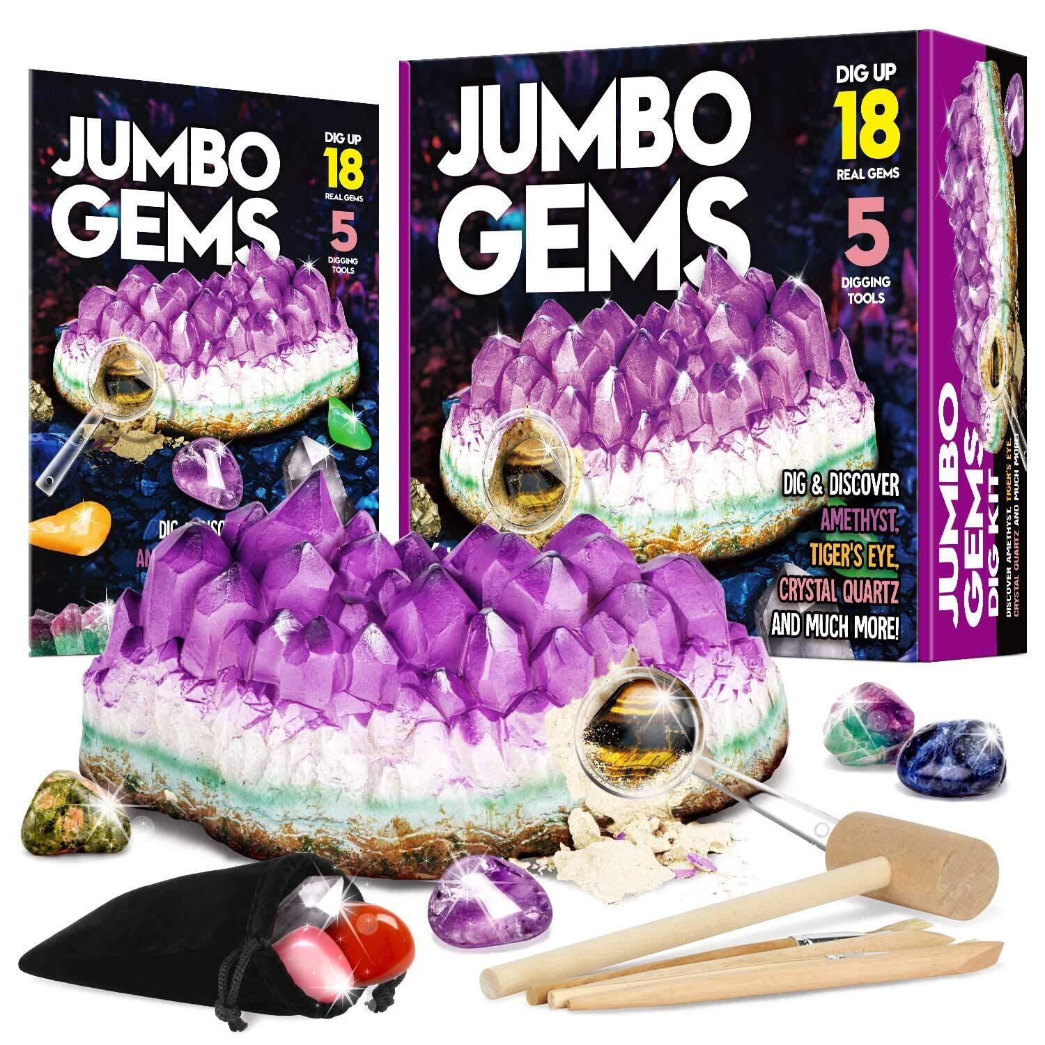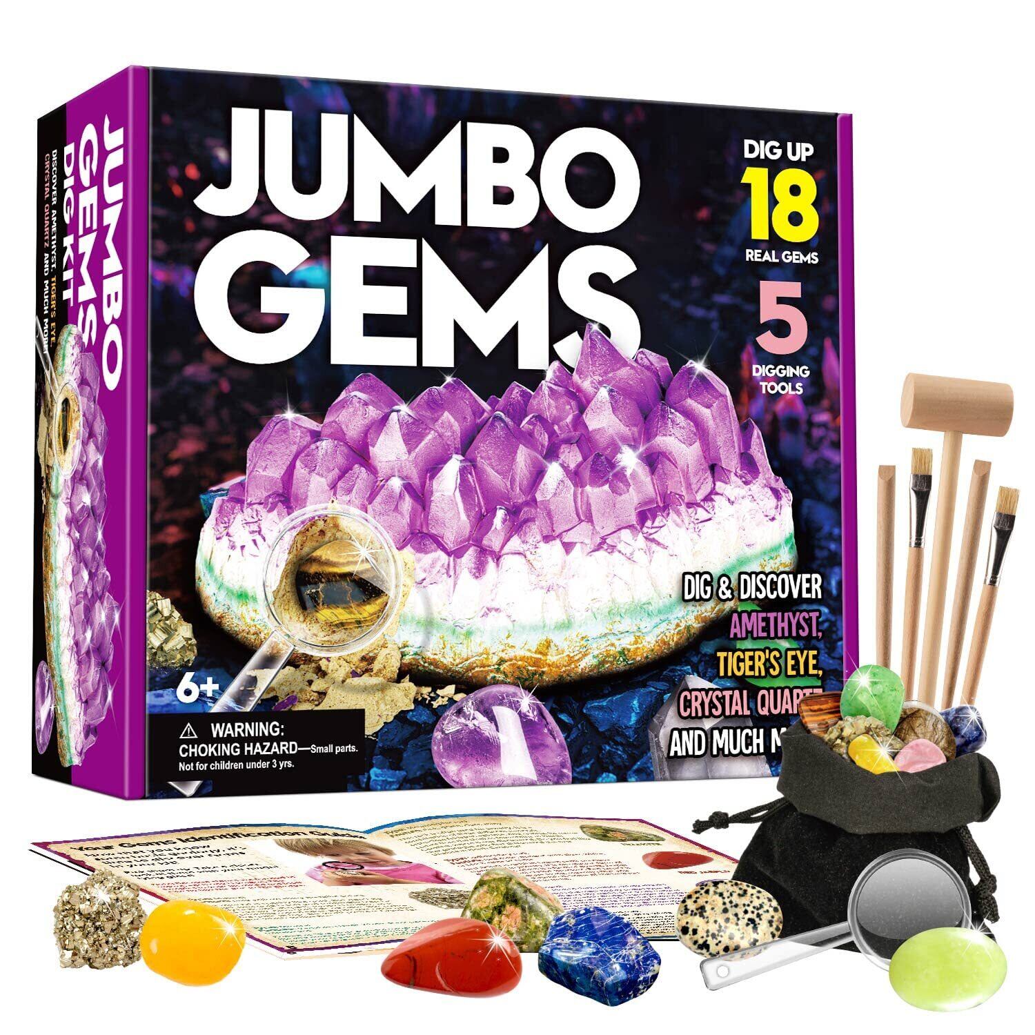 ジャンボ宝石発掘キット: 宝石の興奮を発見! 巨大なアメジストのブロックを掘り出して、18 個の輝く宝石の宝物を明らかにし、宝石の形成と抽出の秘密を明らかにする鮮やかな学習体験を掘り下げましょう。このキットは、子供たちの好奇心を刺激し、実際に宝石を学ぶことができるようにするための科学教育キットです
