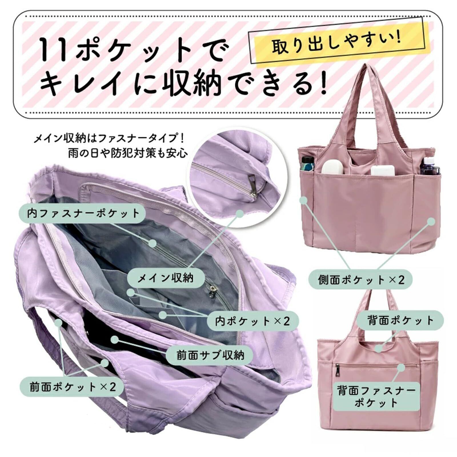 【撥水加工】耐久性・撥水効果の高い、高密度オックスフォード生地採用しているので急な雨でも大丈夫。生地は上品な光沢があり、傷もつきにくく、シワも出来にくいです。防汚性もあり汚れた場合もお手入れが簡単で、水で手洗い可能です。(洗濯機不可)
