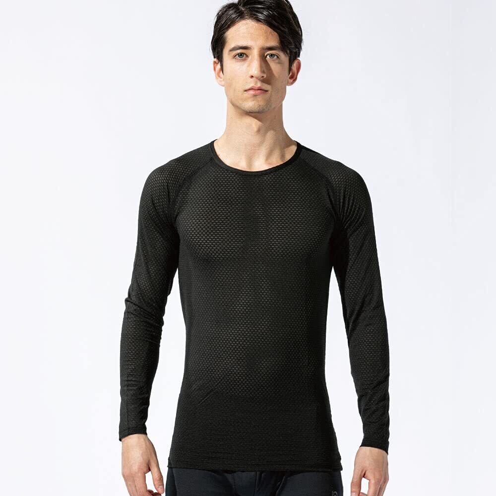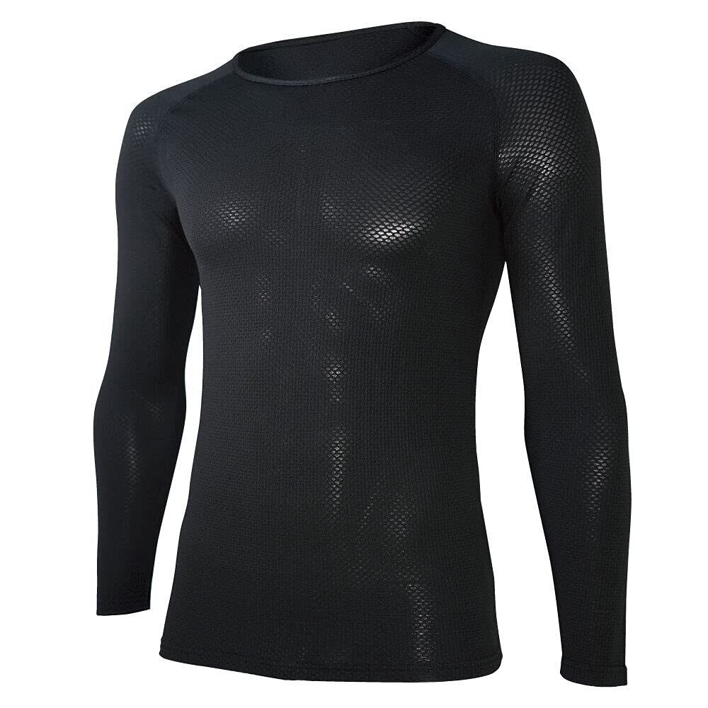 おたふく手袋(OTAFUKU GLOVE) オールシーズンインナー 長袖 丸首 3Dファーストレイヤー [吸汗速乾 消臭 メッシュ コンプレッション メンズ] JW-522 ブラック L