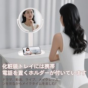 【多機能台座】このミラーの台座には収納スペースが設けられており、ネックレスやピアス、ヘアピンなどの小物を整理してデスク周りをすっきりと保ちます。安定台はスマートフォンスタンドとしても使える。メイクやスキンケアをしながら生放送を見たり、メイクレッスン、ミニ動画、ドラマの追いかけっこなど、楽しい雰囲気で行われます。