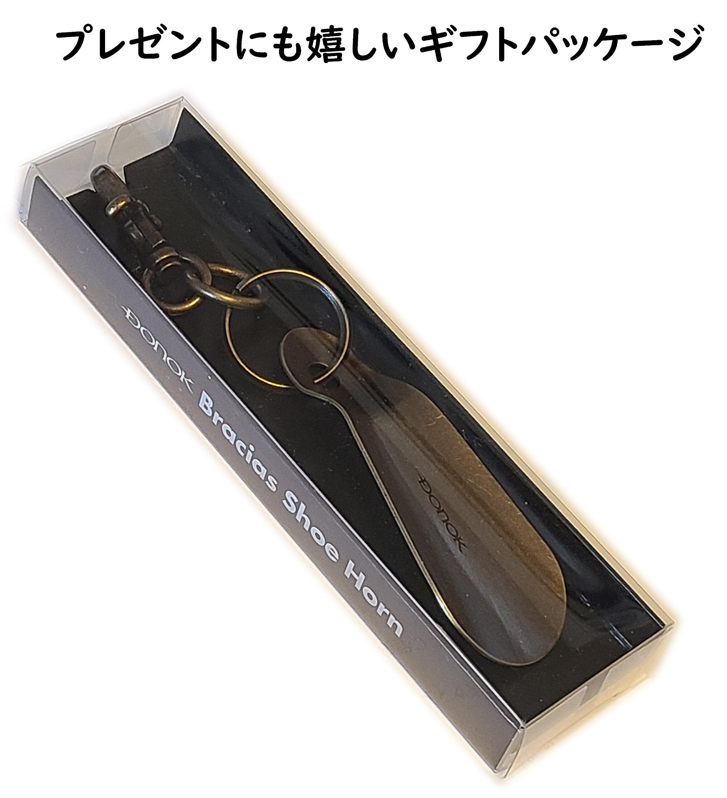 携帯 靴べら 真鍮 おしゃれ ハンド シューホーン 日本製 キーホルダー カラビナ フック付き アンティク Bracias Shoe Horn