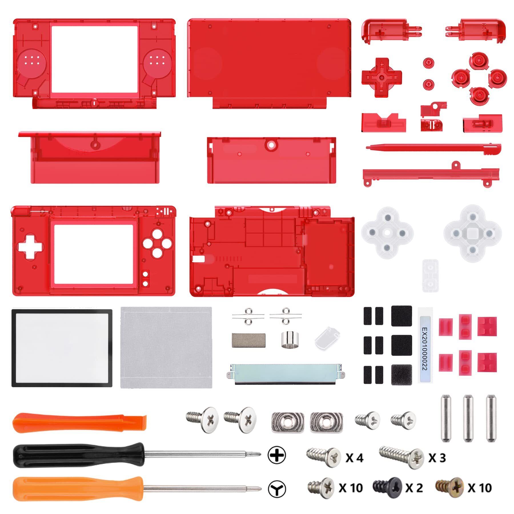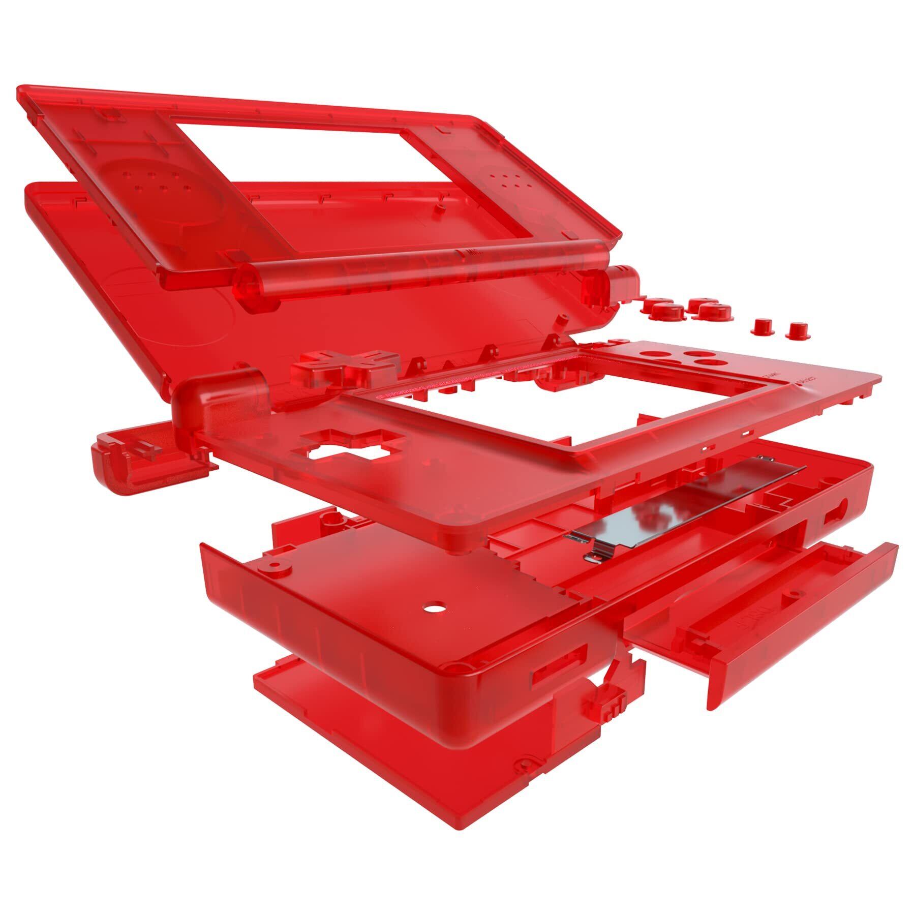 eXtremeRate ds liteに対応用組み立て式カスタム交換シェルクリア素材、交換ボタンも付き、ニンテンドーdsライトに対応用スクリーンレンズ【クリアレッド】