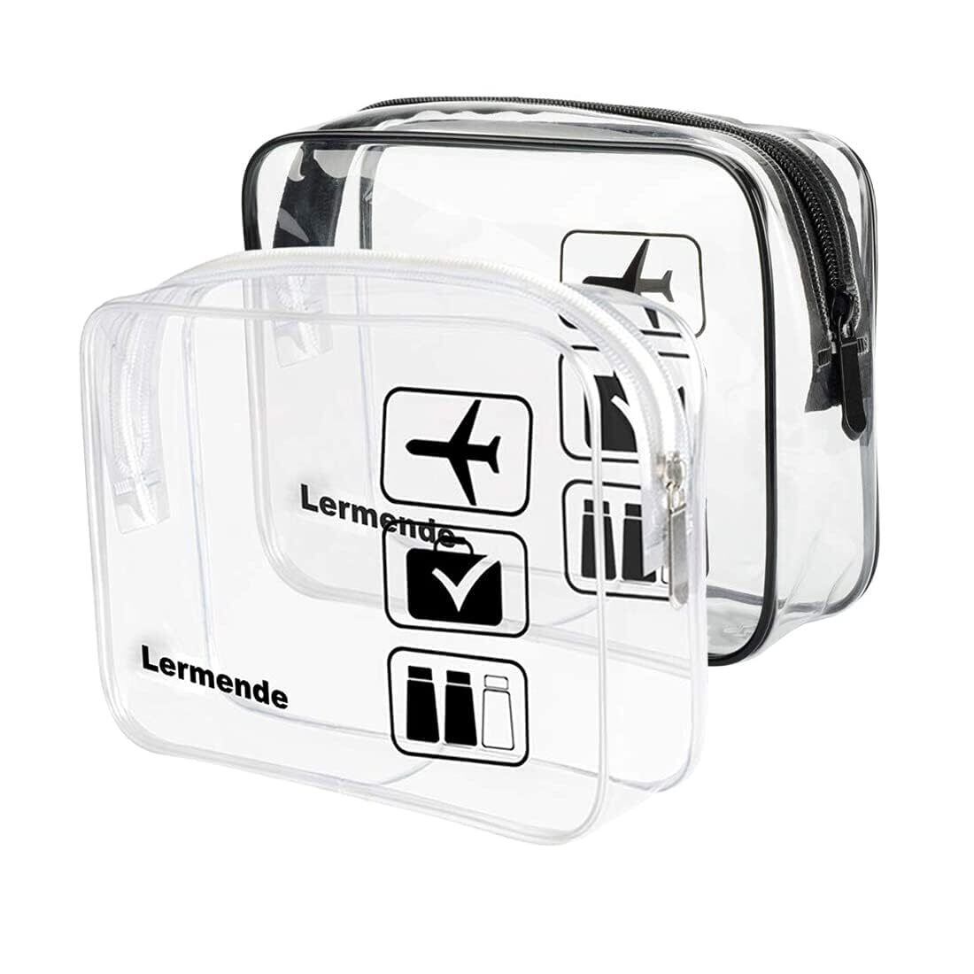 Lermende 2個 トイレタリーバッグ TSA承認済み 洗面用具 ポーチ 透明化粧ポーチ 旅行用ポーチ旅行用化粧品メイクアップバッグ 男女兼用 - (ブラック + 透明)