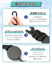 【耐久性】全体は強くて耐久性のあるパラシュートロープ、ABS素材の小さなリール、スチールワイヤーロープ、金属リングで作られています。全体は軽くて耐久性があり、変形しにくく、毎日の使用に適しています。
