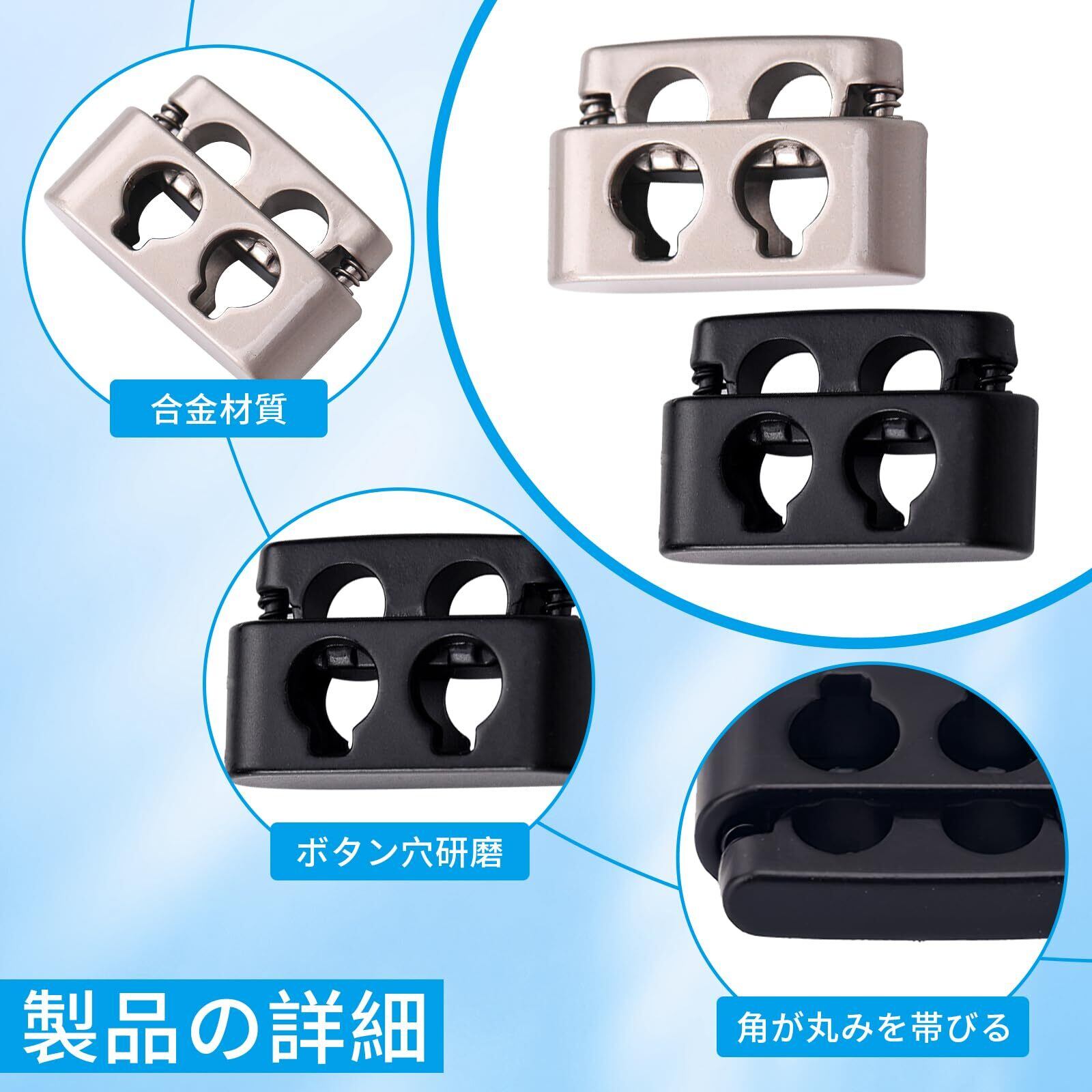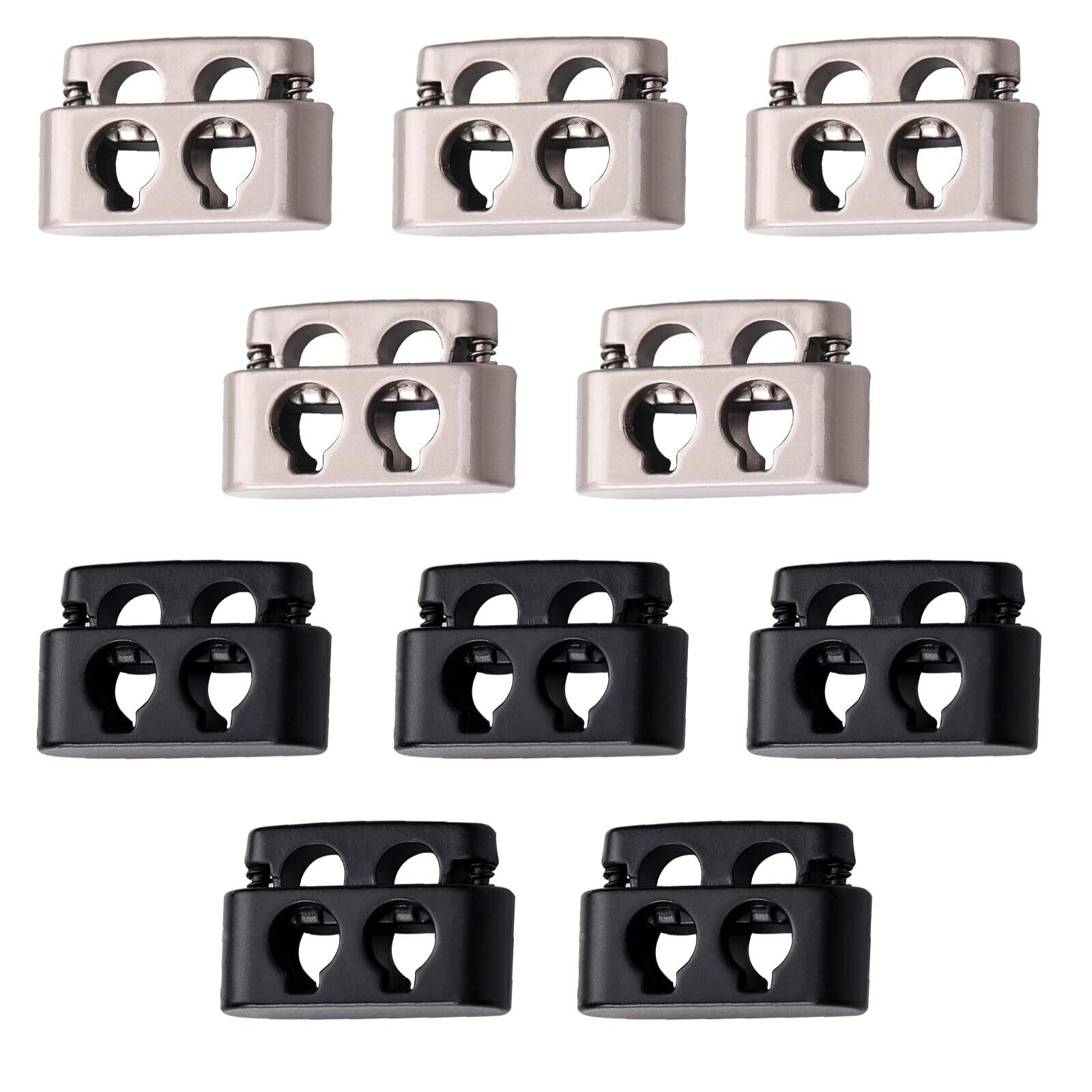 Doyime スプリングコードストッパー 2つ穴 金属製 10個入り 留め具 帽子用あごひも スプリング 内穴 4mm コードストッパー トグルストッパー 紐止め 紐止め金具 交換 補修用 衣類 手作り DIY 手芸