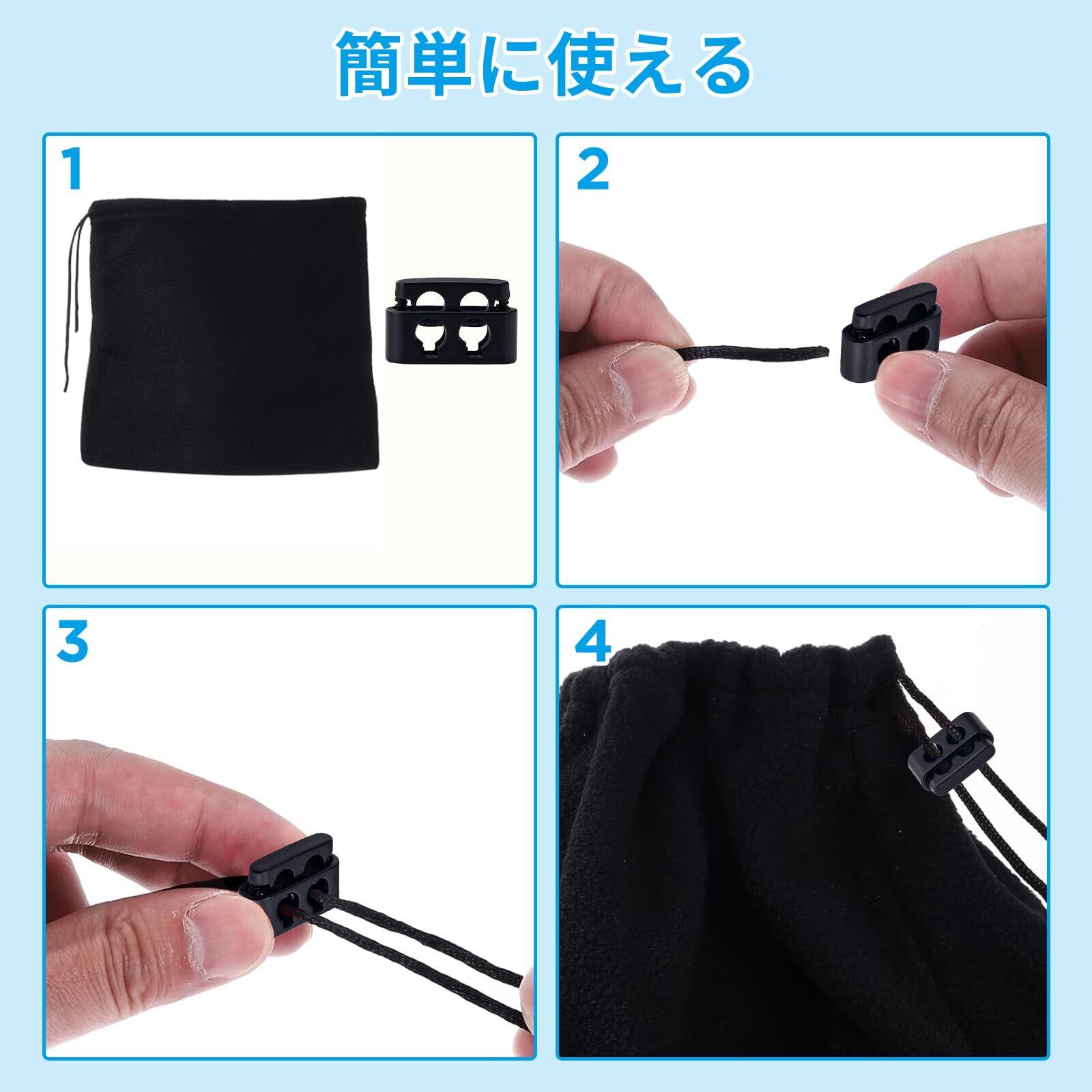 【使用は極めて簡単】突起部分を押す、離すだけで、紐をゆるめたり絞ったりが簡単にでき、開閉がかなり楽になってとても便利です。紐を手で結ぶことが面倒と思う人に最適で、蝶結びが上手くできない子供にもお勧めです。
