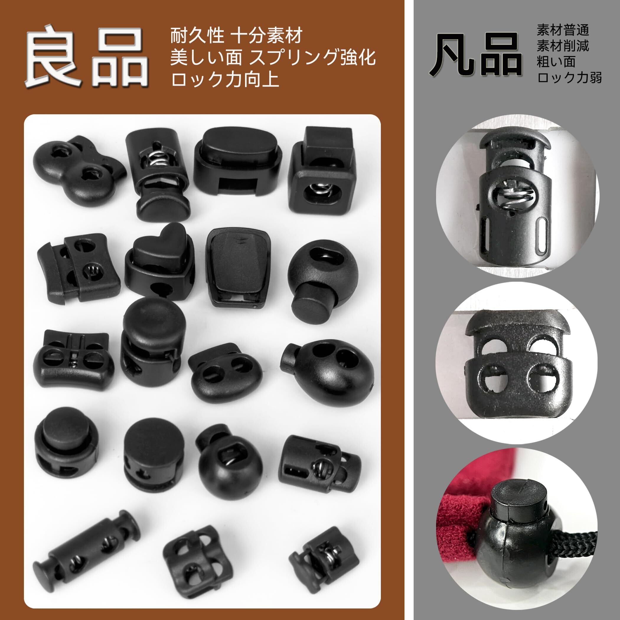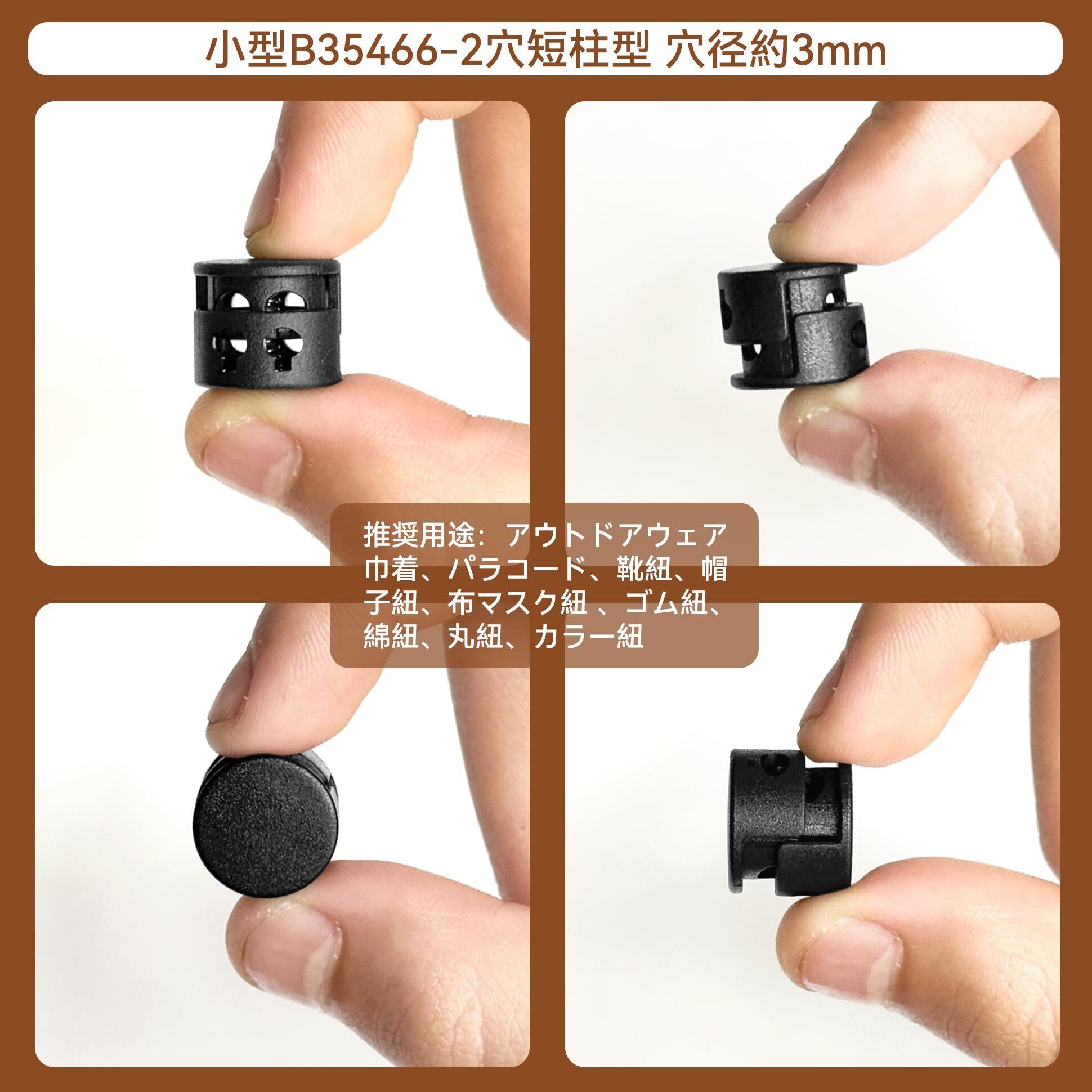 【特価セール】コードストッパー 軽量 小型 コードロック 2穴 3mm スプリングコードストッパー ゴムロープ パラコード 紐止め 巾着 レインジャケット 12個 短柱型 B35466 ブラック