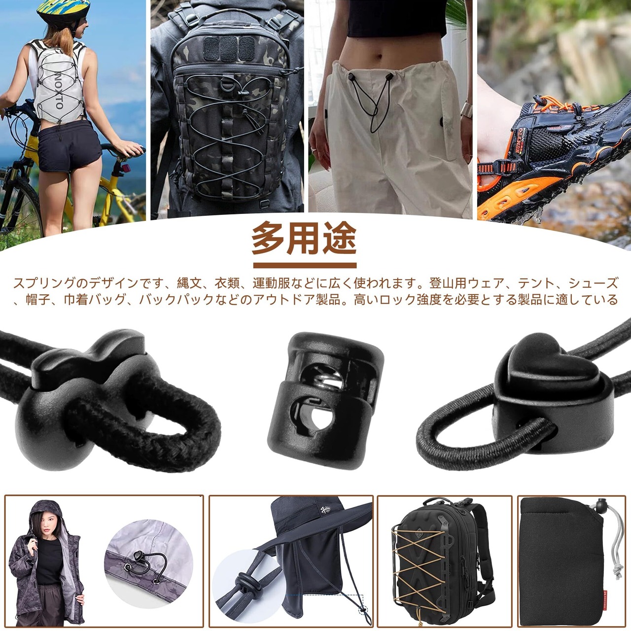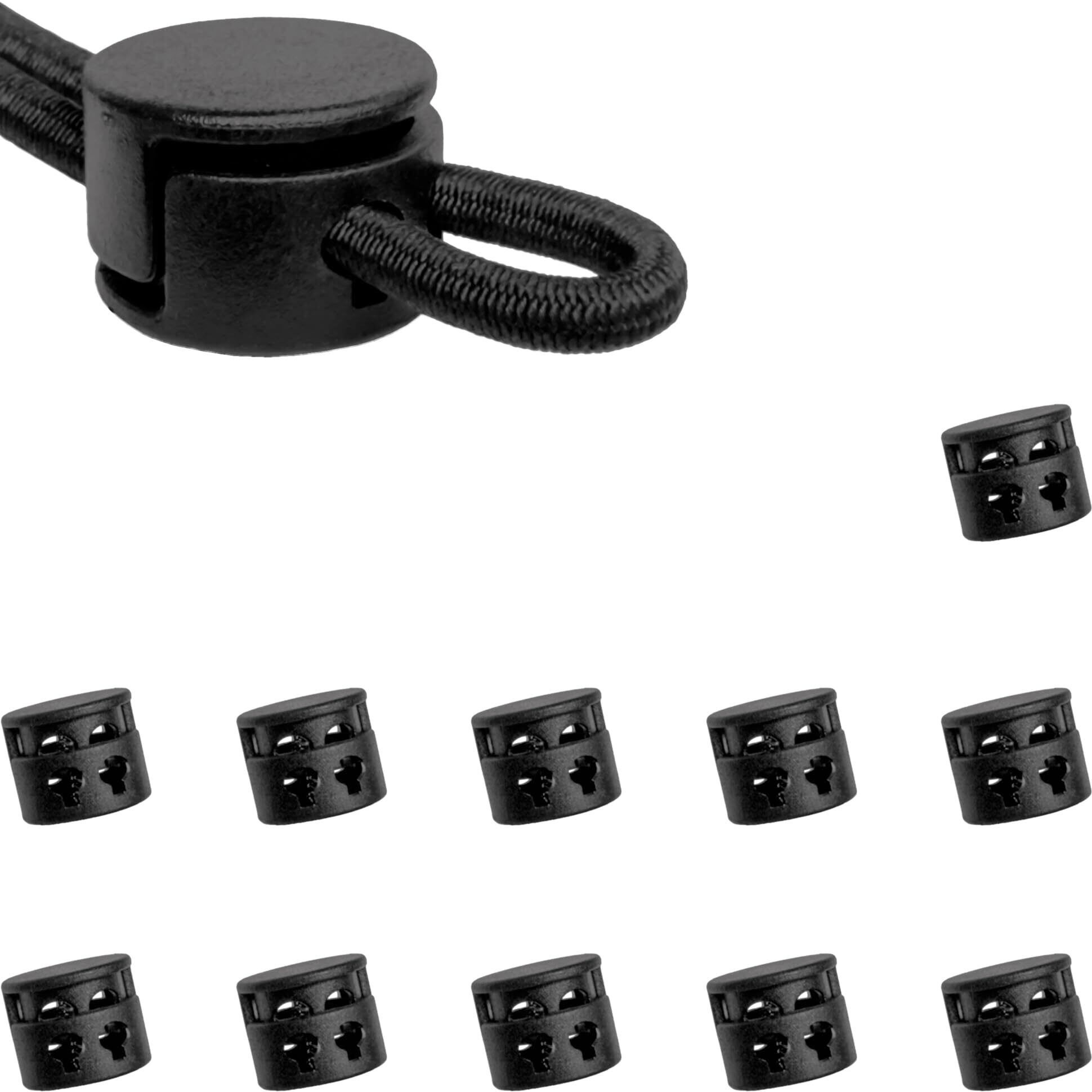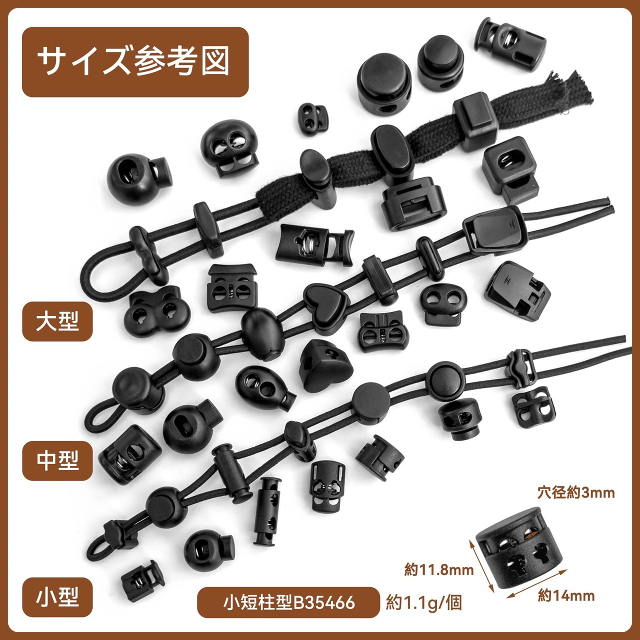 コードストッパー 軽量 小型 コードロック 2穴 3mm スプリングコードストッパー ゴムロープ パラコード 紐止め 巾着 レインジャケット 12個 短柱型 B35466 ブラック