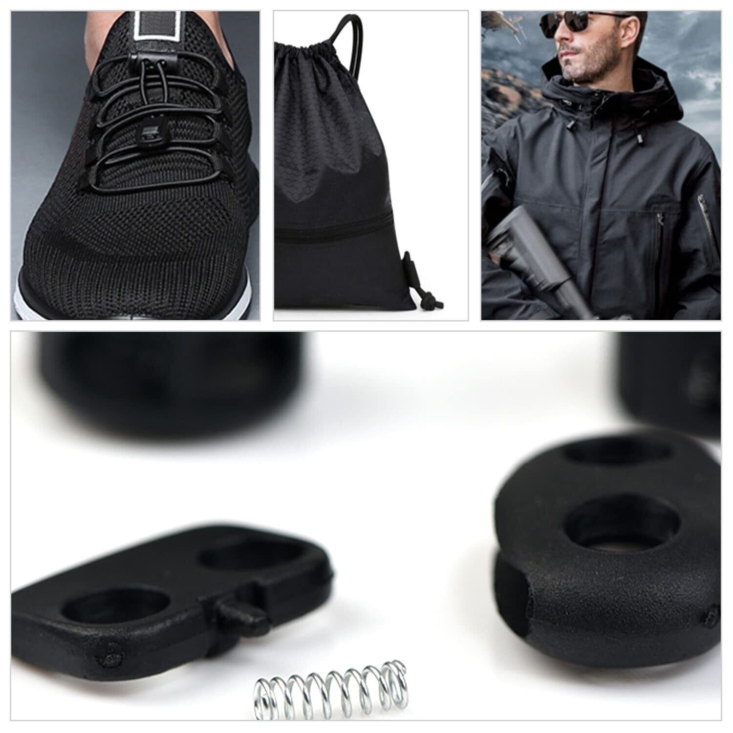 【高品質の素材】丈夫で耐久性が高い ブラスチック製で頑丈で、バネも強い、留め具として紐の長さを調節でき、しっかりしめられます。