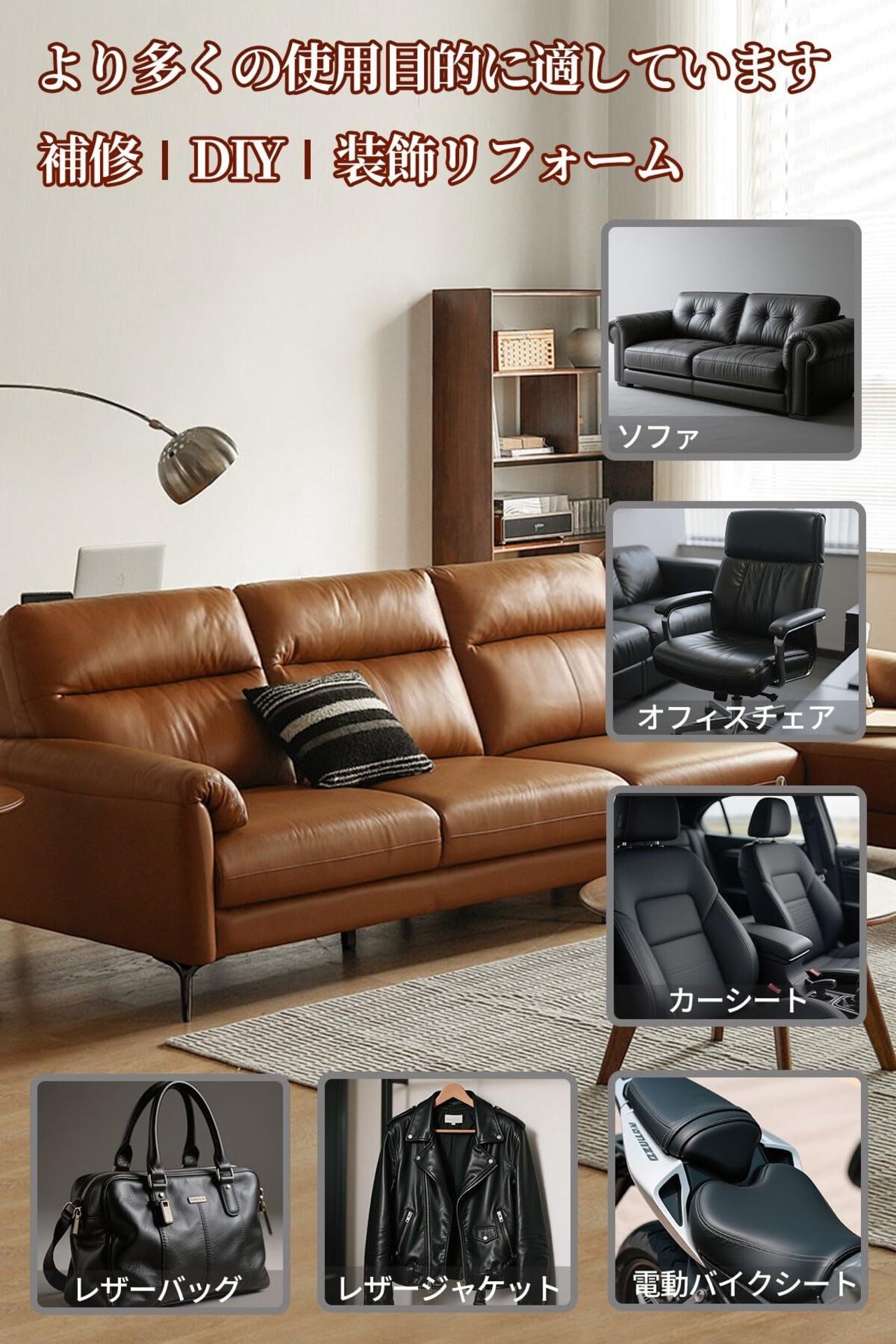 【多様な用途】自転車のサドル、バイクのシート、車のシート、カバンなどにお使いいただけます。ソファーの傷や生地の裂けの補修にもなります。その他、キズや破れ以外に手芸品、民芸品、工芸品などの工作やDIYなどにもご使用いただけます。