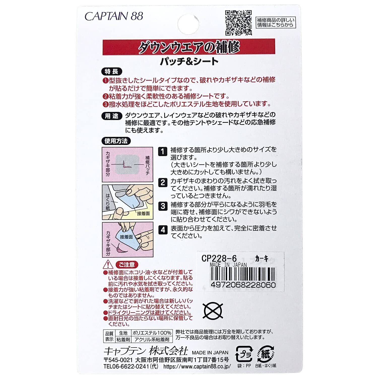 CAPTAIN88 キャプテン 簡単補修シリーズ ダウンウェアの補修パッチ&シート 5枚入り 4種サイズ #6 カーキ シールタイプ CP228