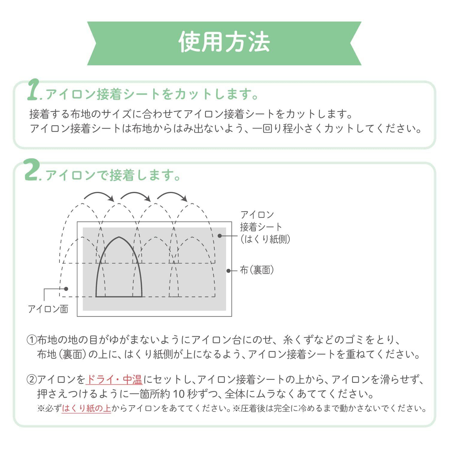 ※接着フィルム(さわるとひっかかりがあります)にアイロンが当たるとフィルムが溶けてアイロンが汚れます。