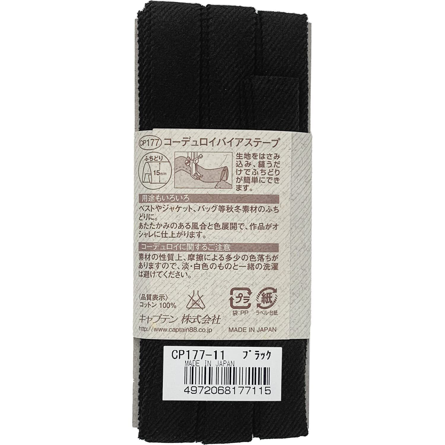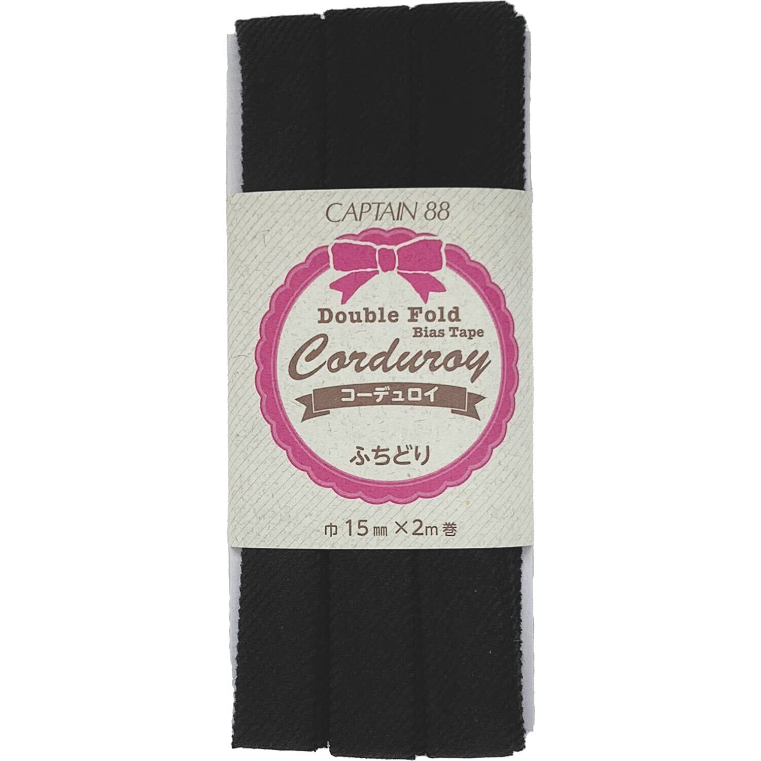 CAPTAIN88 キャプテン コーデュロイ ふちどり バイアステープ 15mm幅×2m巻 #11 ブラック CP177