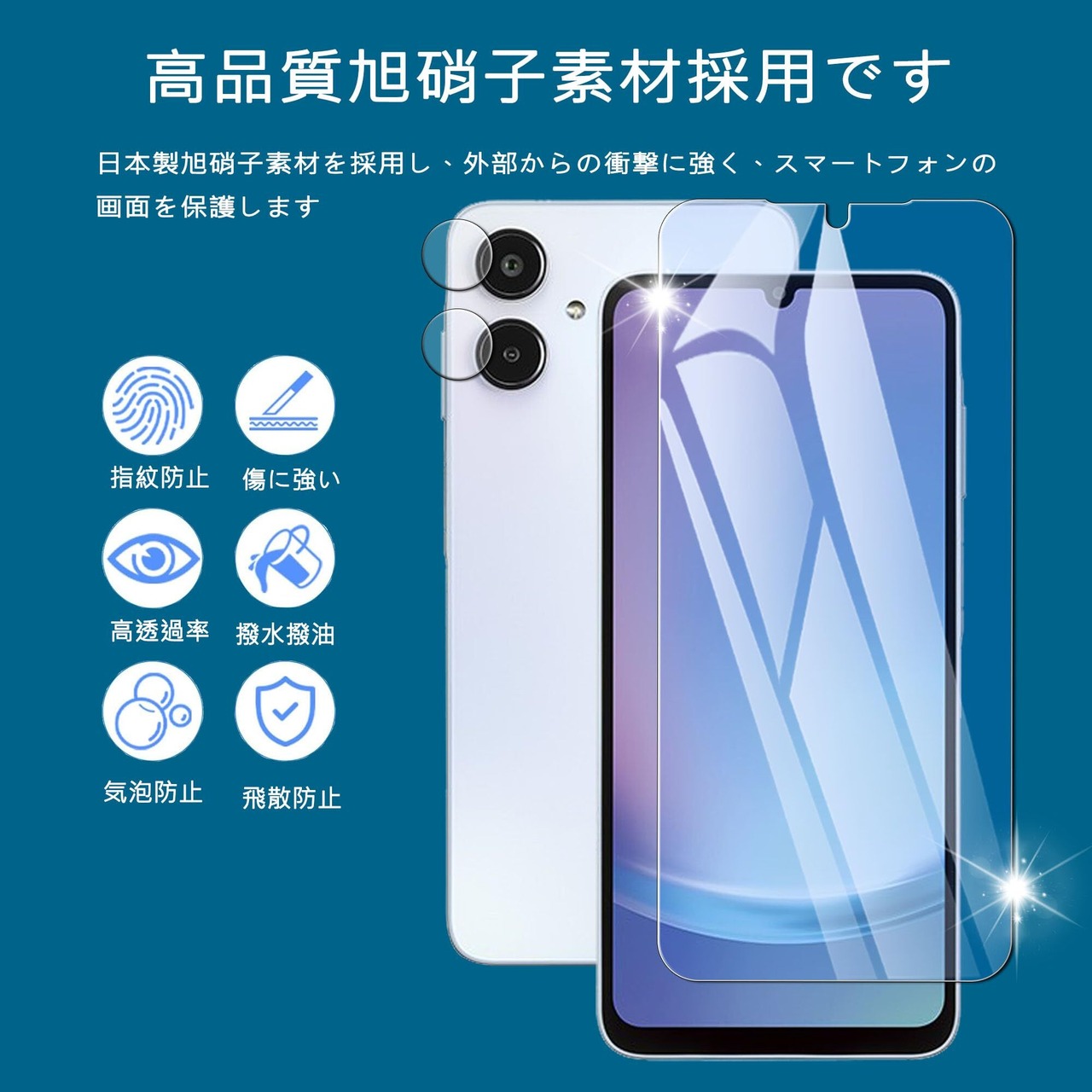 さらには、指紋が付きにくい特殊コーティングが施されており、いつでもクリアな視界を維持できます。耐久性にも優れ、毎日の使用に最適です。カメラフィルムも2枚付属しており、カメラ部分の保護もばっちりです。