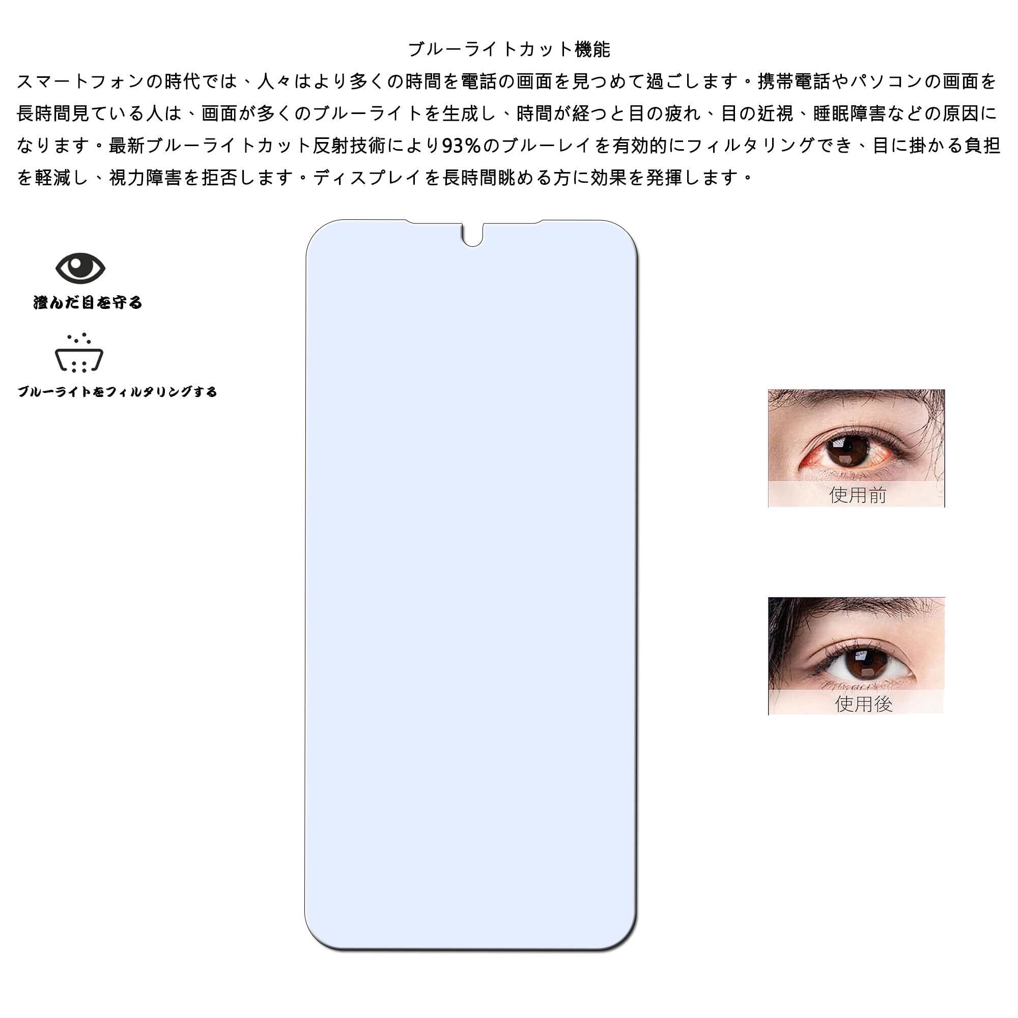 特徴:ブルーライトカット、硬度9H、飛散防止、指紋防止、簡単貼り付け