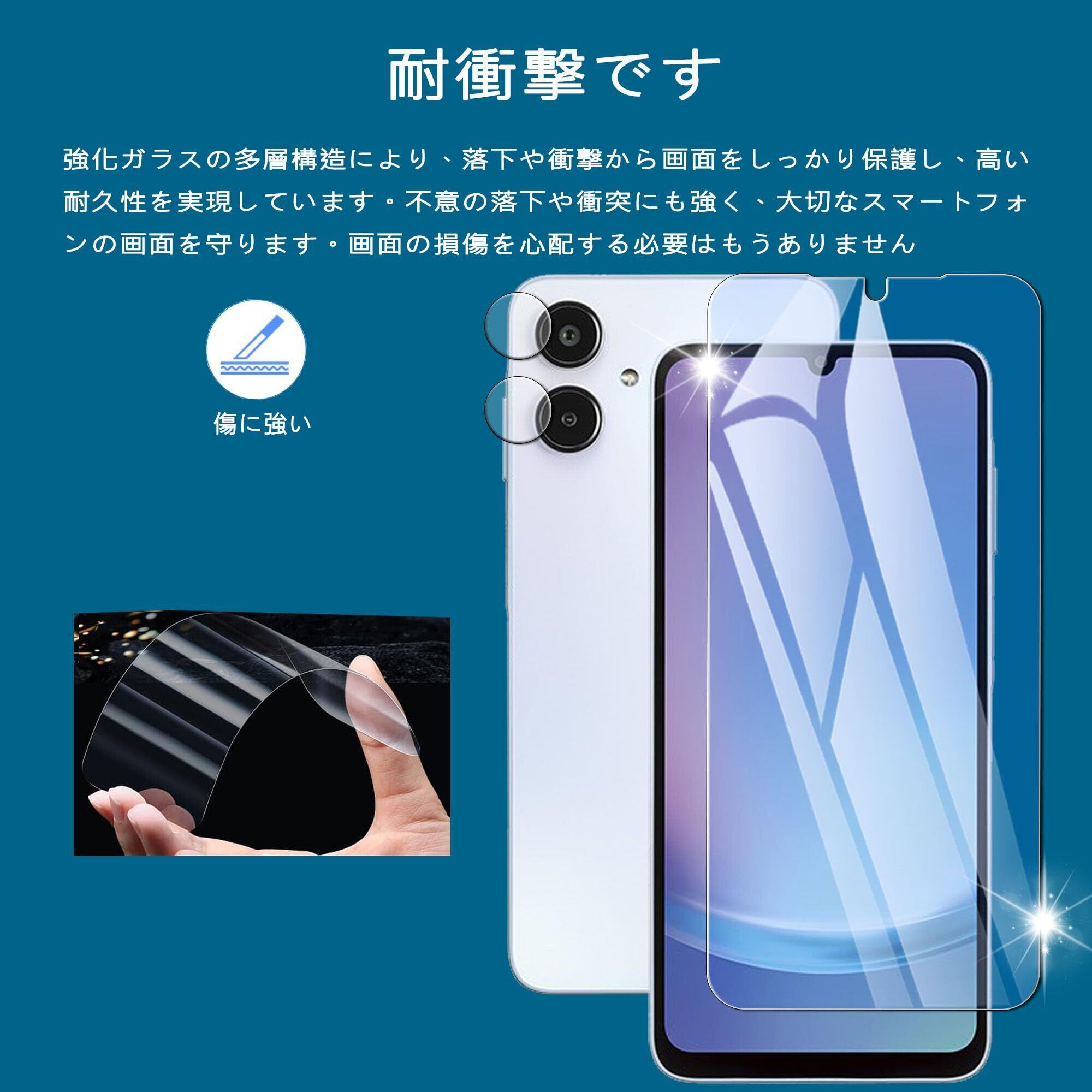 Nutmeg Galaxy A25 5G ガラスフィルム ブルーライトカット(2枚)+Galaxy A25 5G カメラフィルム(2枚)【旭硝子素材製 ガイド枠付き】SC-53F SCG33 保護フィルム 目の疲れを軽減します 硬度9H ギャラクシーA25 強化ガラス 高透過率 飛散防止 指紋防止 耐衝撃 簡単貼り付け 気泡ゼロ 撥水撥油