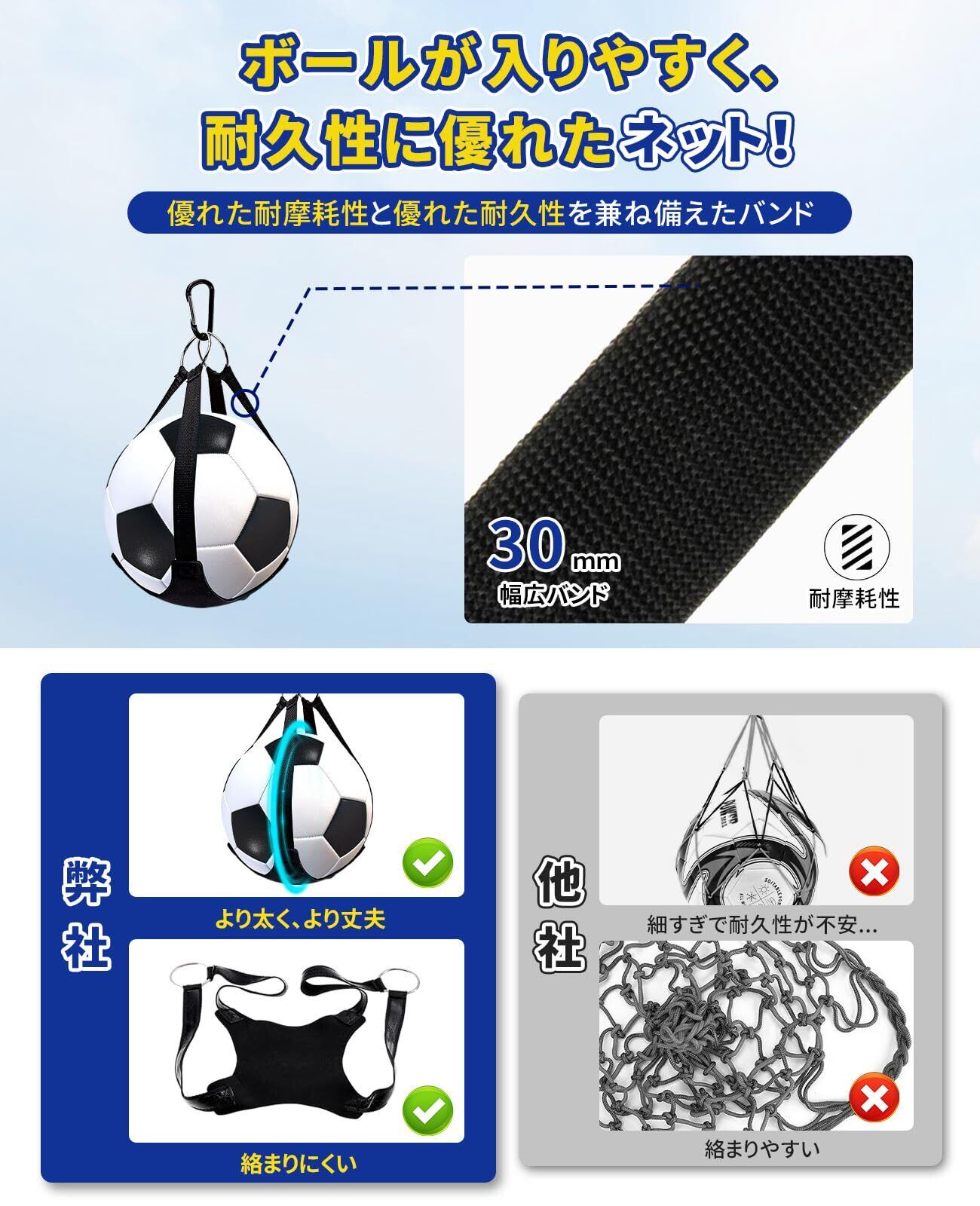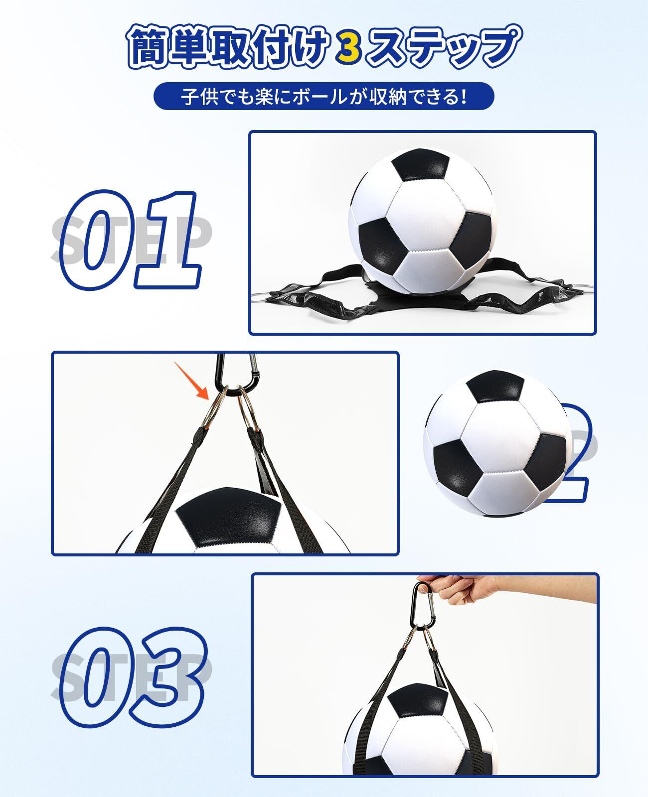 調節可能なストラップがついており、大人から小学生まで幅広い年齢層に対応します。特に、頻繁にスポーツを楽しむ方には、ボールを簡単に持ち運べて便利です。また、収納時にはコンパクトにまとめることができ、移動時の負担を軽減します。