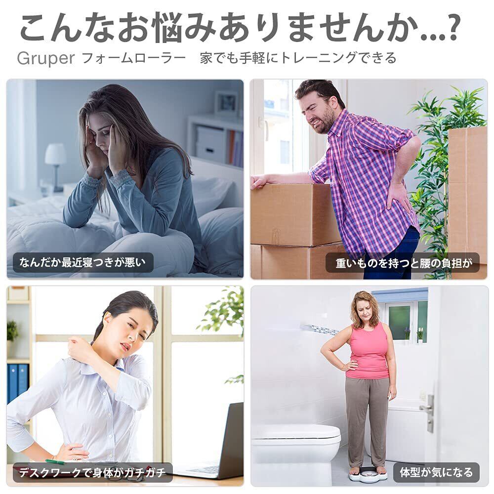 【頑丈な設計】高品質な素材で作られたGruperのフォームローラーは、耐久性に優れており、長期間の使用でも変形しにくい設計です。安心してご使用いただけるため、高頻度でトレーニングを行う方にもお勧めです。