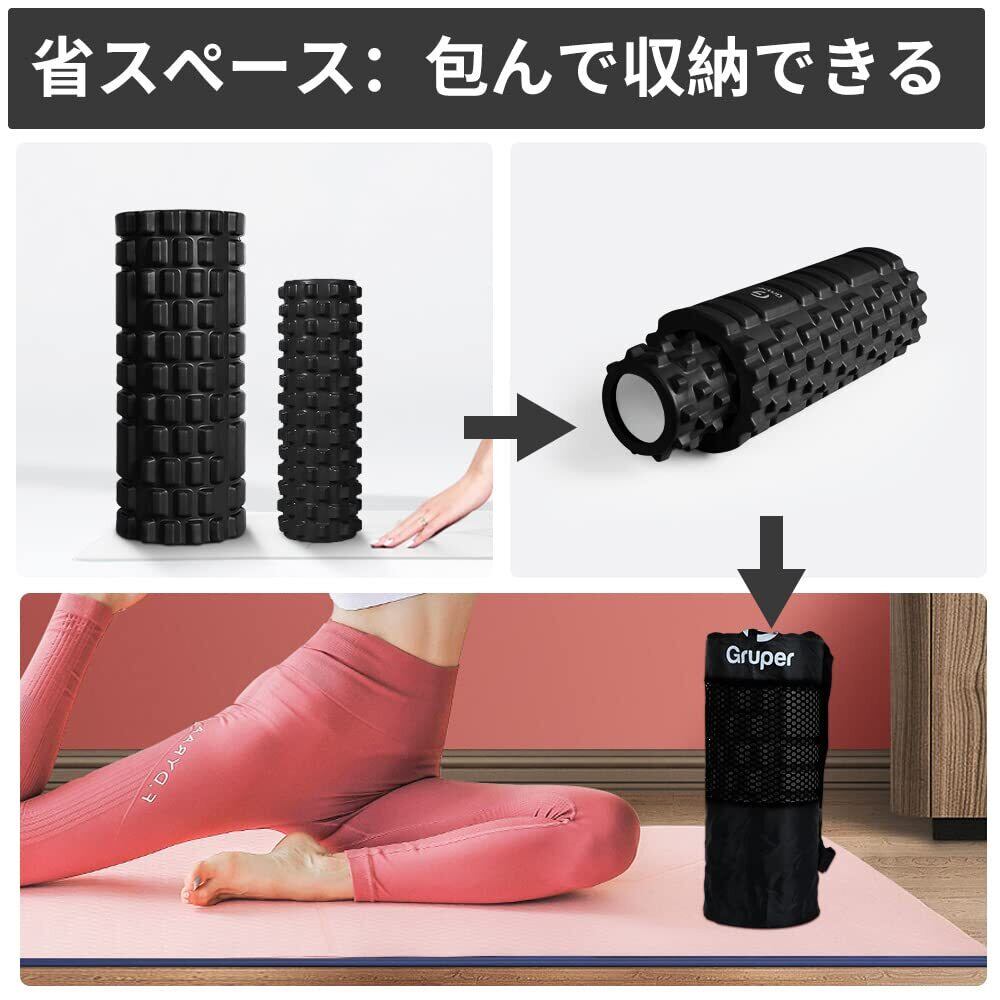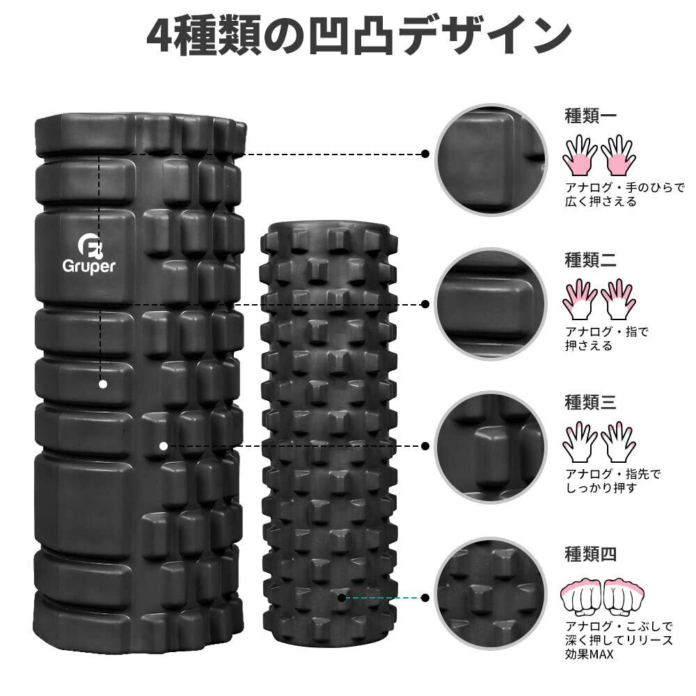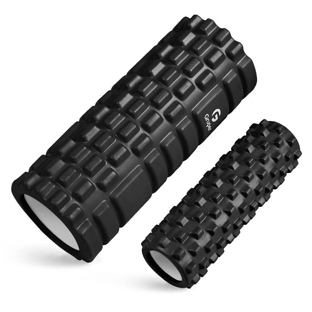Gruperフォームローラー 筋膜リリース 大小2個セット 筋膜ローラー ストレッチローラー グリッドフォームローラー (ブラック)