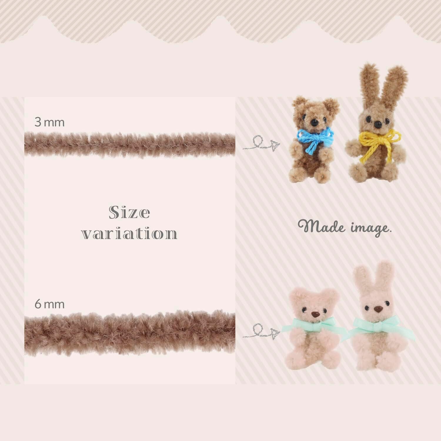 入数:モール幅(太さ)6mm×1.3m巻で、くま・うさぎ の、2体が作れます。※差し目は別売りでご用意が必要です※