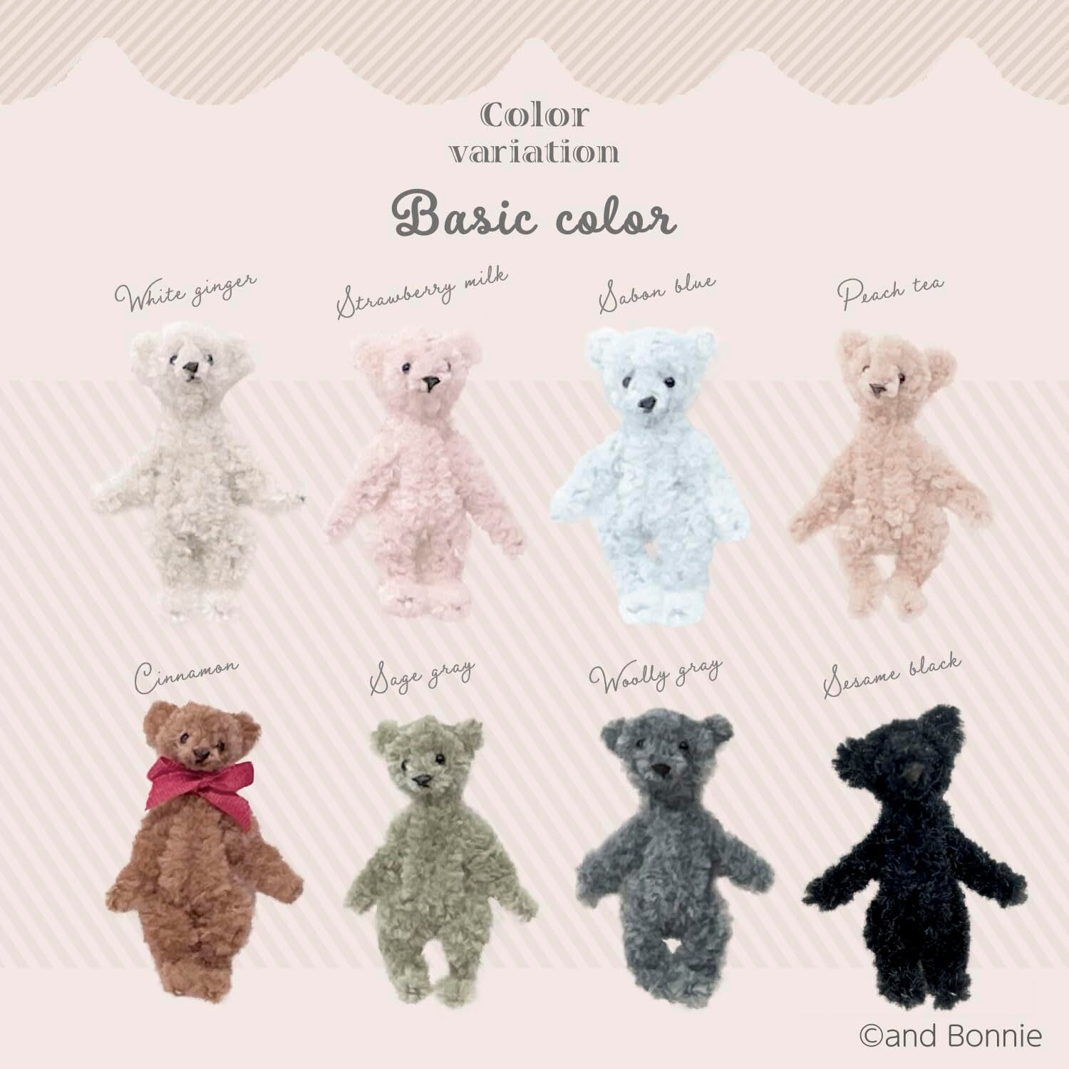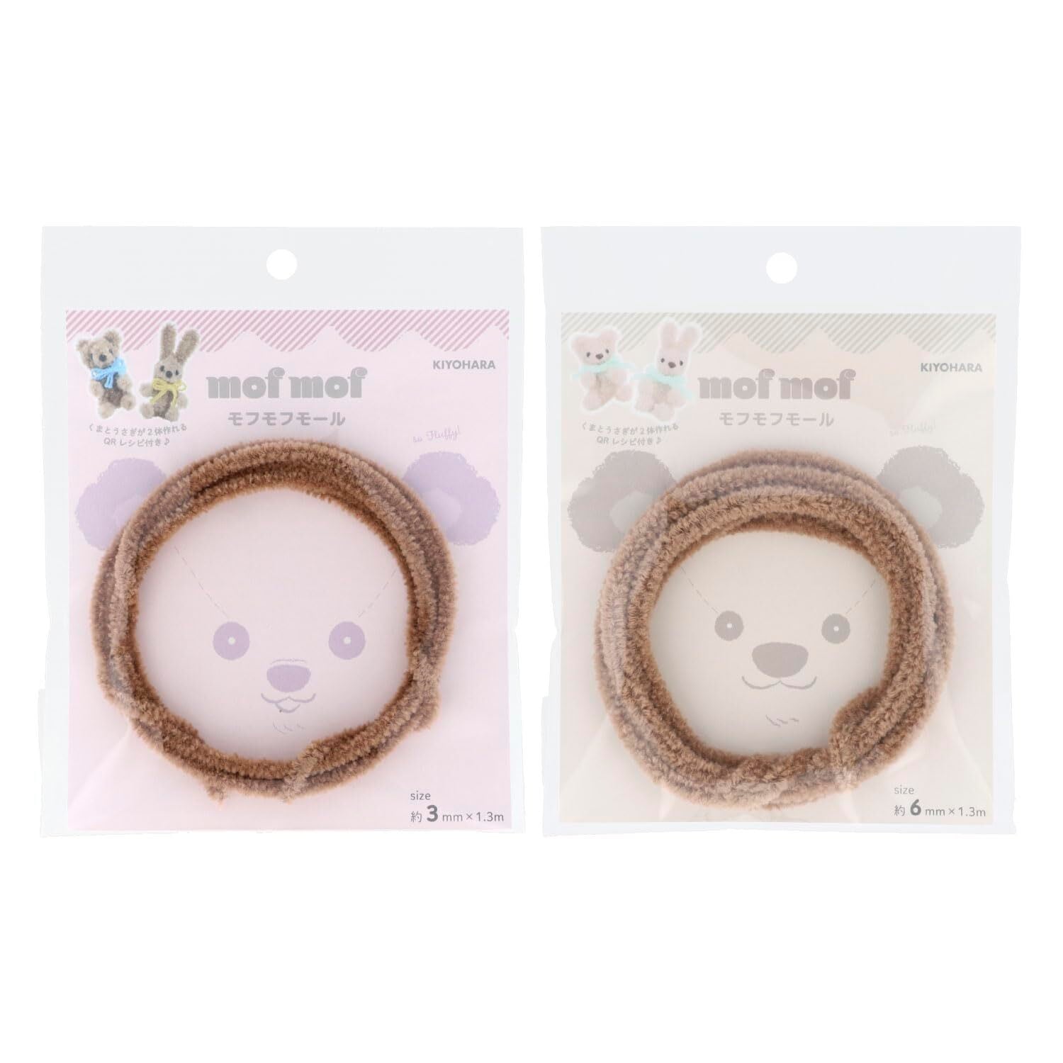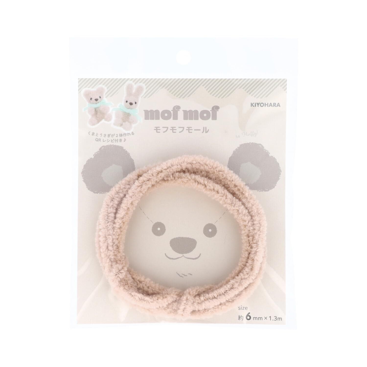 KIYOHARA モフモフモール モール 幅6mm×1.3m巻 PT ピーチティー くま・うさぎ が作れるレシピのQRコード付き MOF-02
