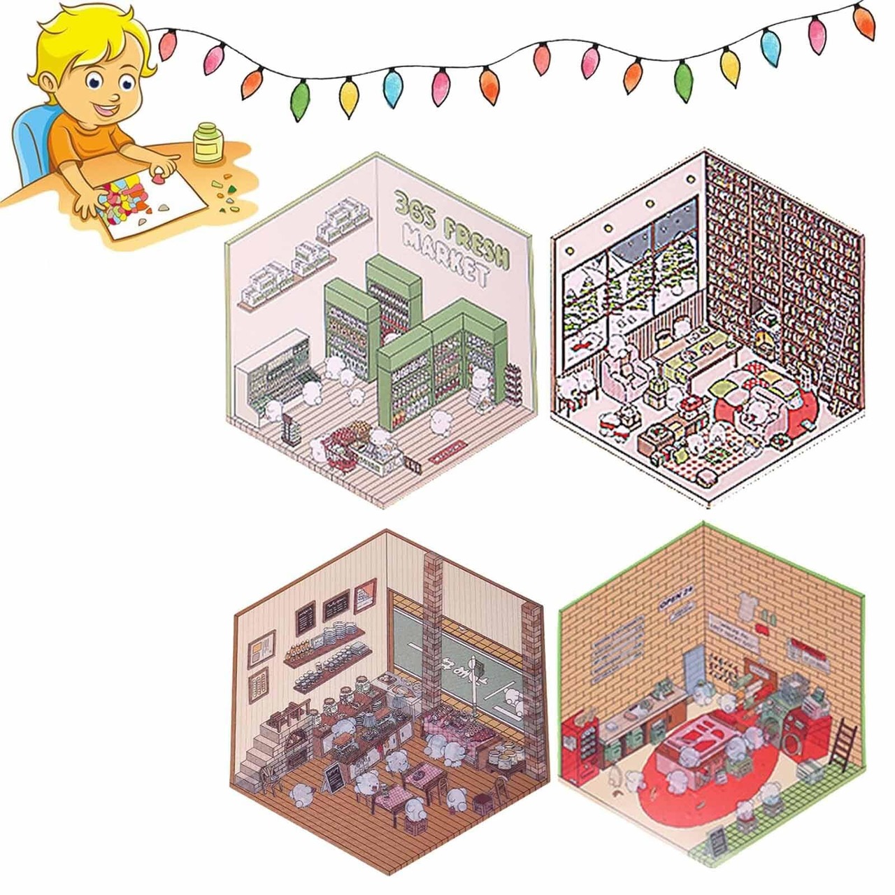 【新春セール】4個3Dハウス ステッカー シーンシール 造景シール 紙ミニチュア模型 紙ドールハウス 紙素材 手帳素材パック 日記帳 DIY 3D ハウスステッカー 立体 韓国系 ニッチ 可愛い シール 趣味(コンビニ、パン屋、ランドリー、書斎) | allstore3