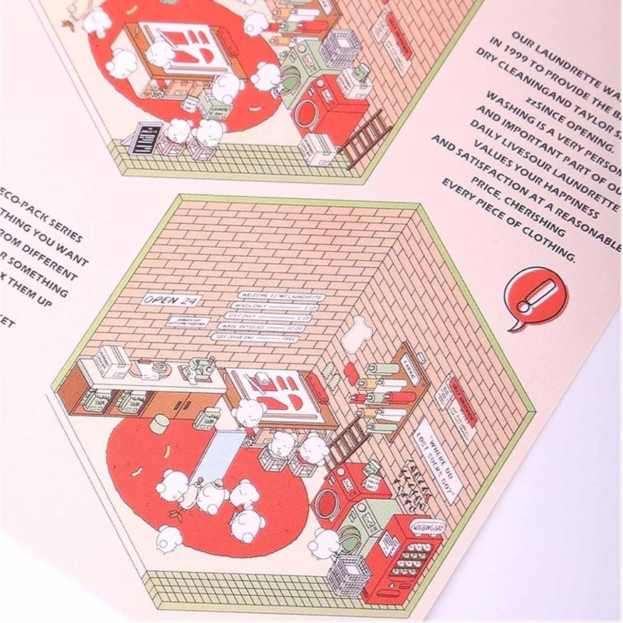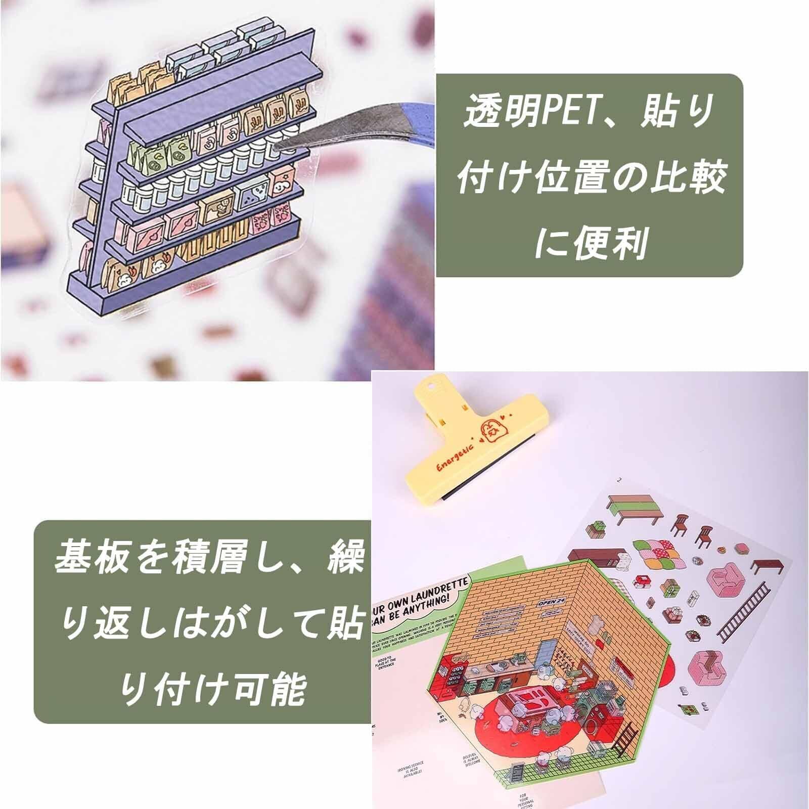 この3Dハウスステッカーは、可愛らしいデザインのシーンシールで、コンビニやパン屋、ランドリー、書斎などのミニチュア模型が楽しめます。手帳や日記帳の飾り付けに最適で、自分だけの世界を手軽に創り出せます!
