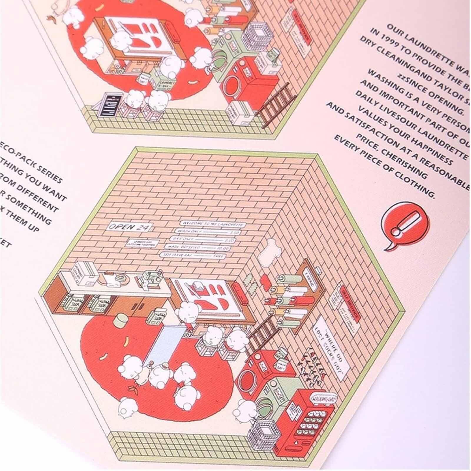 4個3Dハウス ステッカー シーンシール 造景シール 紙ミニチュア模型 紙ドールハウス 紙素材 手帳素材パック 日記帳 DIY 3D ハウスステッカー 立体 韓国系 ニッチ 可愛い シール 趣味(コンビニ、パン屋、ランドリー、書斎)