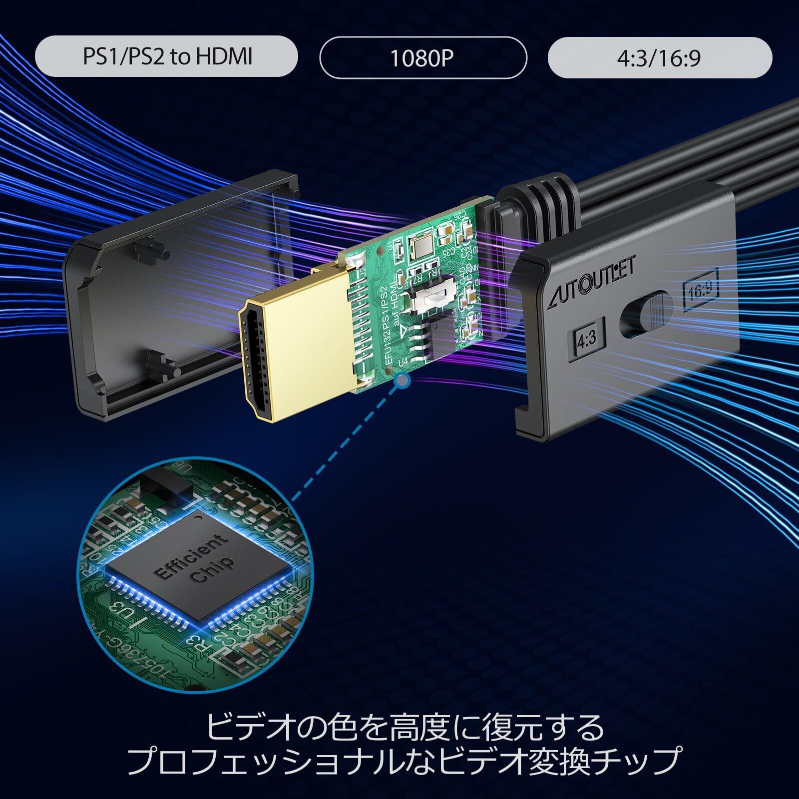 AUTOUTLET PS1/PS2 HDMI変換 1080P(60hz)のみサポート コンバーター 4:3/16:9変換スイッチ付き ps2 hdmi 変換 ケーブル PS1/PS2対応 HDMI 1080P 変換コンバーター
