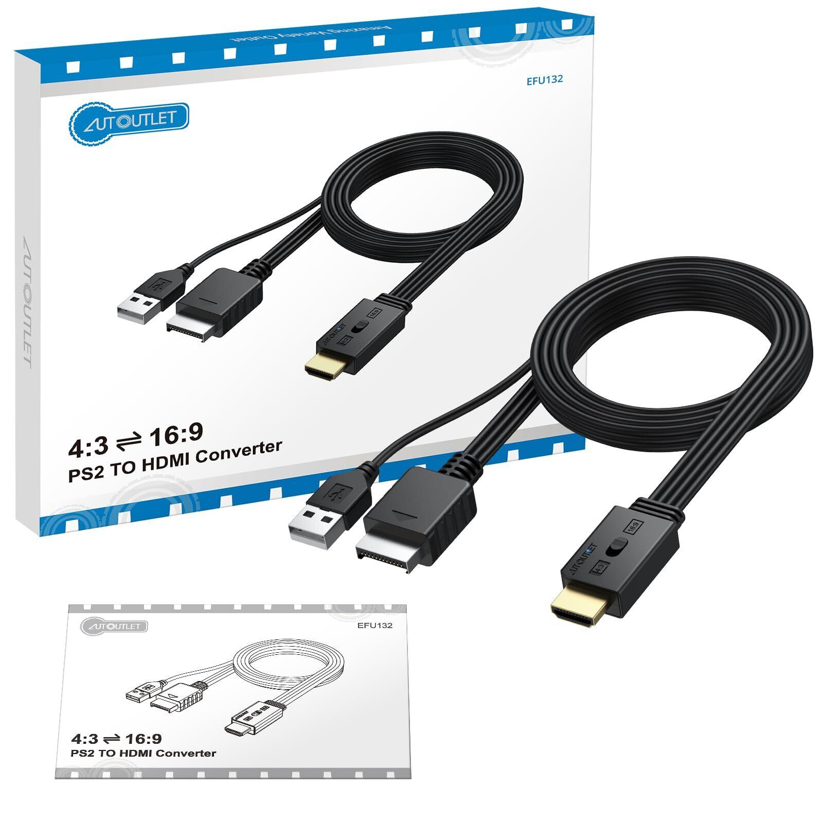 【新着商品】AUTOUTLET PS1/PS2 HDMI変換 1080P(60hz)のみサポート コンバーター 4:3/16:9変換スイッチ付き ps2 hdmi 変換 ケーブル PS1/PS2対応 HDMI 1080P 変換コンバーター