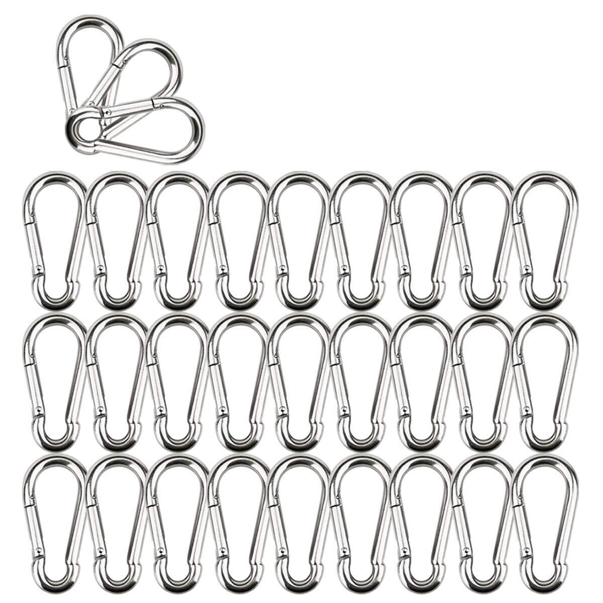 リッセイ カラビナ 304ステンレス スプリングフック キーホルダー 多機能カラビナ アウトドア トレッキング 落下防止 耐荷重80kg (5cm、30個セット)