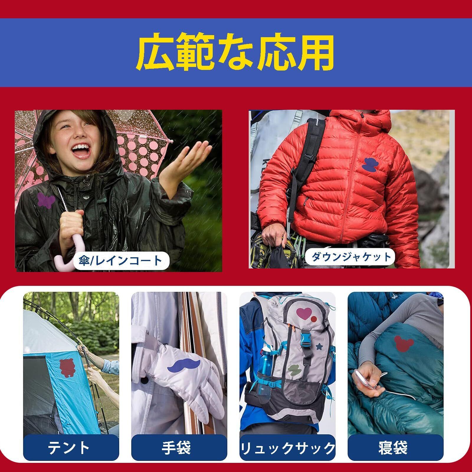 【広く使用】:私たちのパッチはあなたが効果的に服を装飾し修復するのに役立ち、あなたの服を補修したり補強したりするのに適して、ダウンジャケット、傘、テント、アウトドア寝袋、コート、リュックサック、手袋にも適しています。