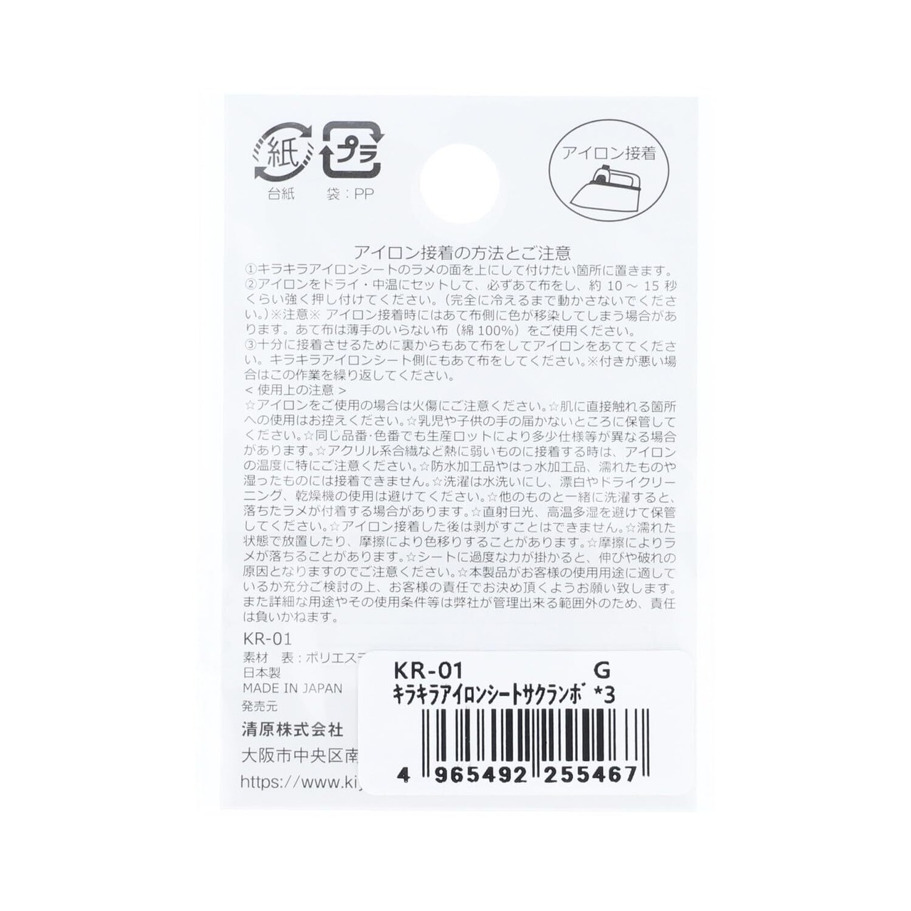 【新着商品】KIYOHARA キラキラアイロンシート 5枚入り W20mm×H20mm G さくらんぼ ゴールド KR-01