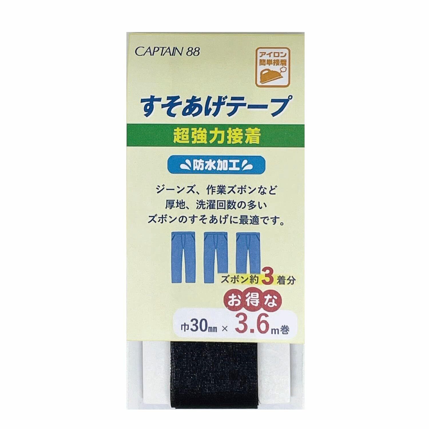 【人気商品】キャプテン 超強力 裾上げテープ 【防水加工・洗濯可/アイロン接着・使い方動画付】 約30mm巾×約3.6m巻 黒 CPL87