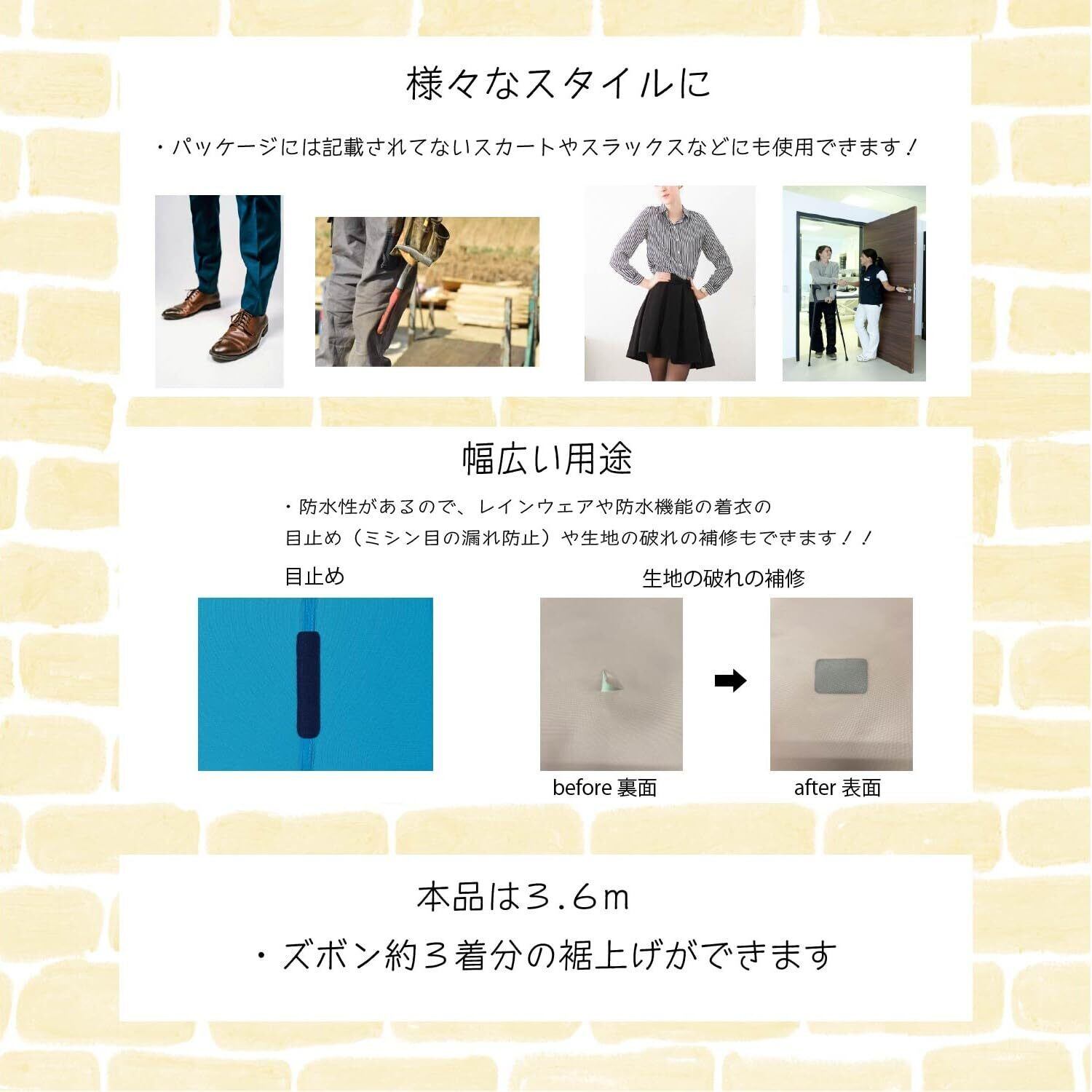 【安心の日本製、ズボン約3着分のお得な3.6m巻入り】生産国:日本 商品本体サイズ:約30mm巾×約3.6m巻 厚さ:約0.4mm 【ご注意】低温表示の生地には使用できません。/コーティング加工、表面がツルツルした生地、ナイロン、シルクその他接着しにくい生地があります。/薄地のズボンは風合いをそこねますのでご注意ください。