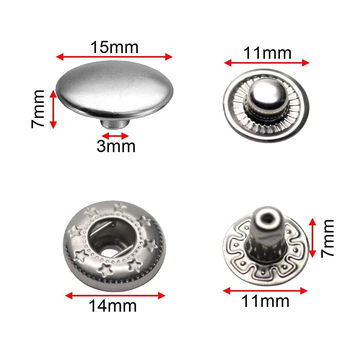 【人気商品】45組入ステンレス鋼バネホックジャンパーホックレザークラフトDIY 手作 (15mm シルバー)