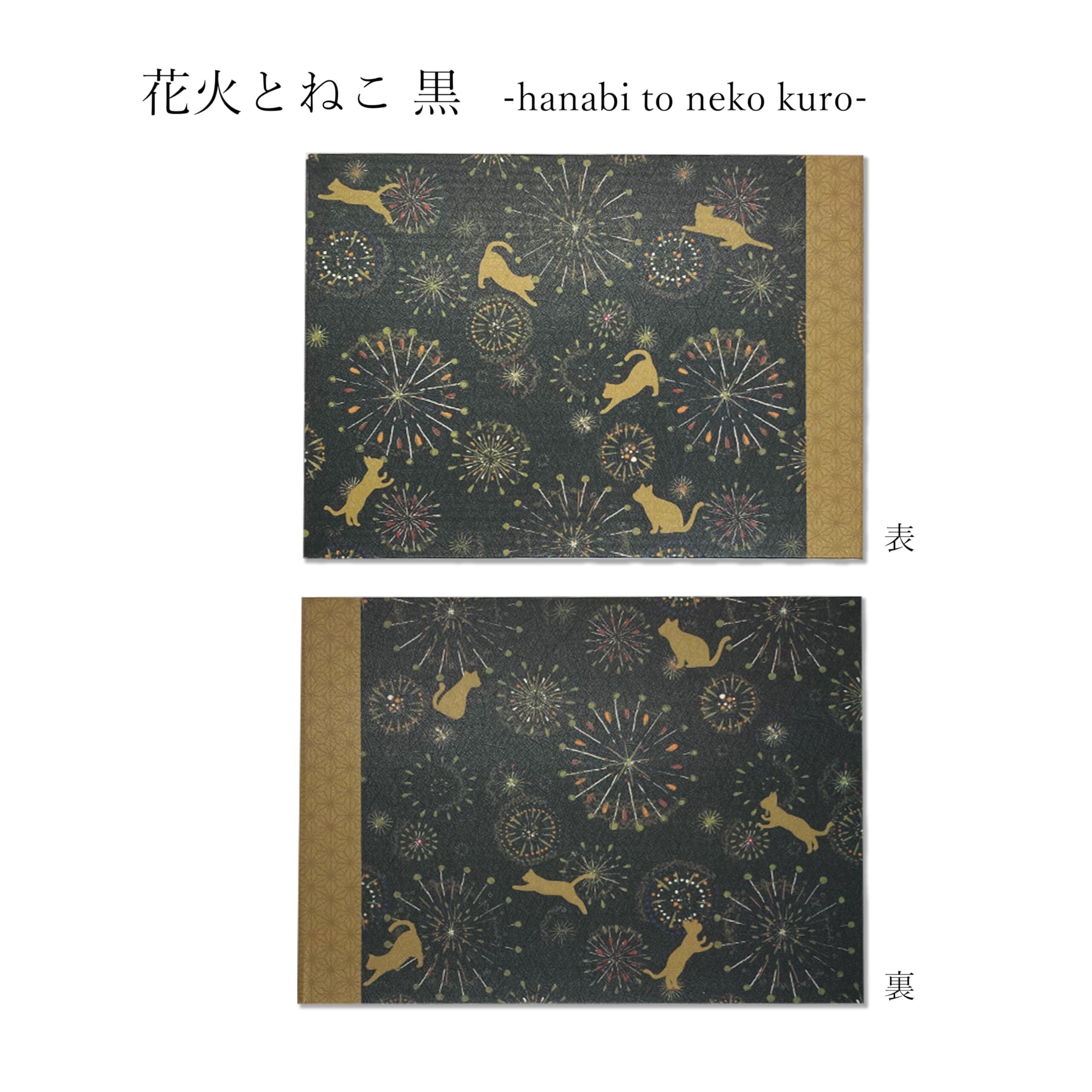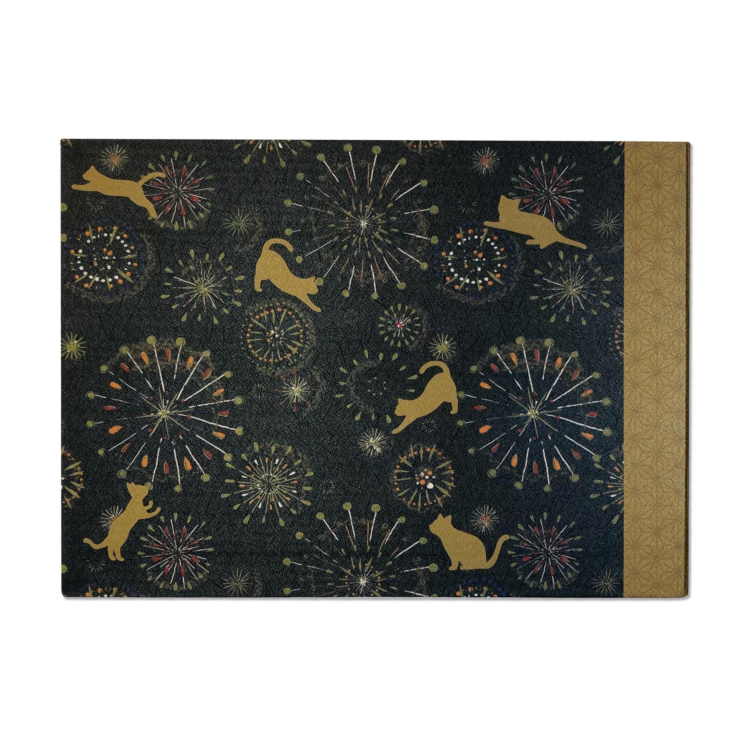 (Styleneo) 御朱印帳 書き置き用 235×170mm 32 ポケット 御朱印ホルダー 見開き御朱印帳 切り絵御朱印ファイル (花火とねこ黒)