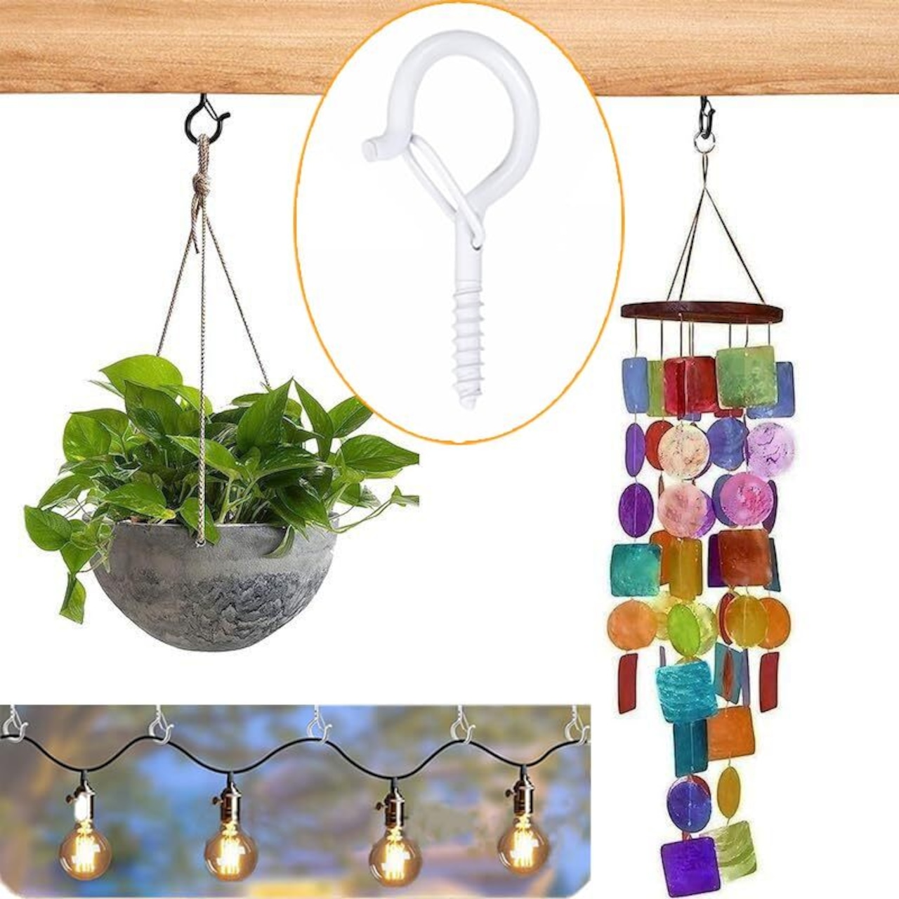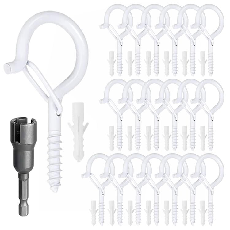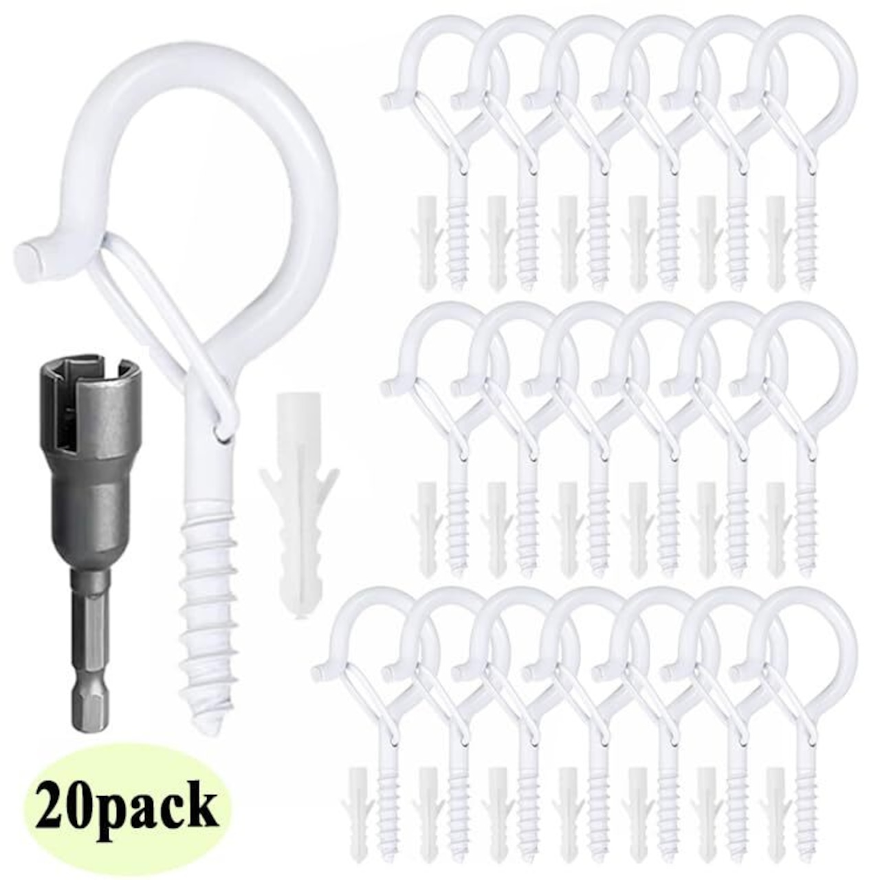 【特価セール】2022最新 天井 フック 炭素鋼 Qハンガー ネジ フック 20個入り ねじフック よーと 吊り下げ金具 安全バックルデザイン搭載 ねじ込み式ハンガー プラスチック拡張パイプ付き ウォールキャビネットフック クリスマスライトハンガーフック スクリューアイフック ライト/タオル/植物/台所用品/風鈴/花園/鳥かご どの吊り下げに最適 室内室外兼用 全長55mm (ホワイト)