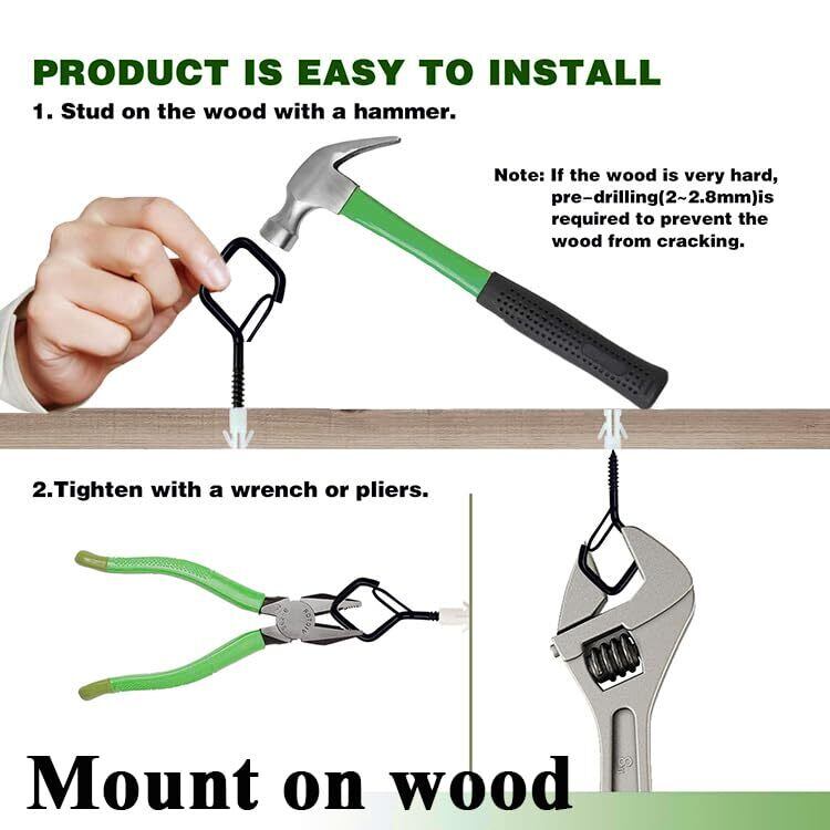 【様々な適用】壁や天井などの固体表面に適しています。屋外照明、天井、植物、台所用品、風鈴、レンガ、木の梁、屋外の屋根、花園、鳥かご、カーテン、ロープ、チェーン、フィーダー、壁掛け時計、キッチン用品、植木鉢、フォトフレーム、カーテン、チェーンなどすべての固体表面に適用しています。吊り、固定金具としても大活躍です。