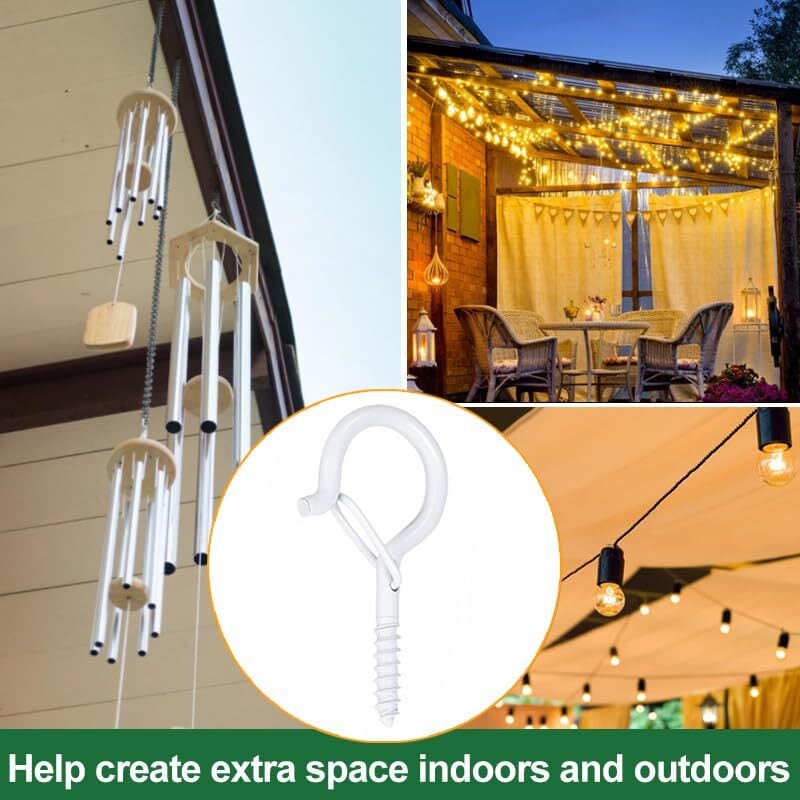 天井 フック 炭素鋼 Qハンガー ネジ フック 20個入り ねじフック よーと 吊り下げ金具 安全バックルデザイン搭載 ねじ込み式ハンガー プラスチック拡張パイプ付き ウォールキャビネットフック クリスマスライトハンガーフック スクリューアイフック ライト/タオル/植物/台所用品/風鈴/花園/鳥かご どの吊り下げに最適 室内室外兼用 全長55mm (ホワイト)