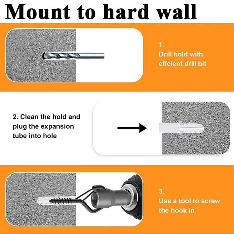 【取付簡単】ネジフックはプラスチックの膨張管を備えており、石膏板やレンガなどの硬い面に使用していて、ハンマーやスパナで直接木に当たることができます。