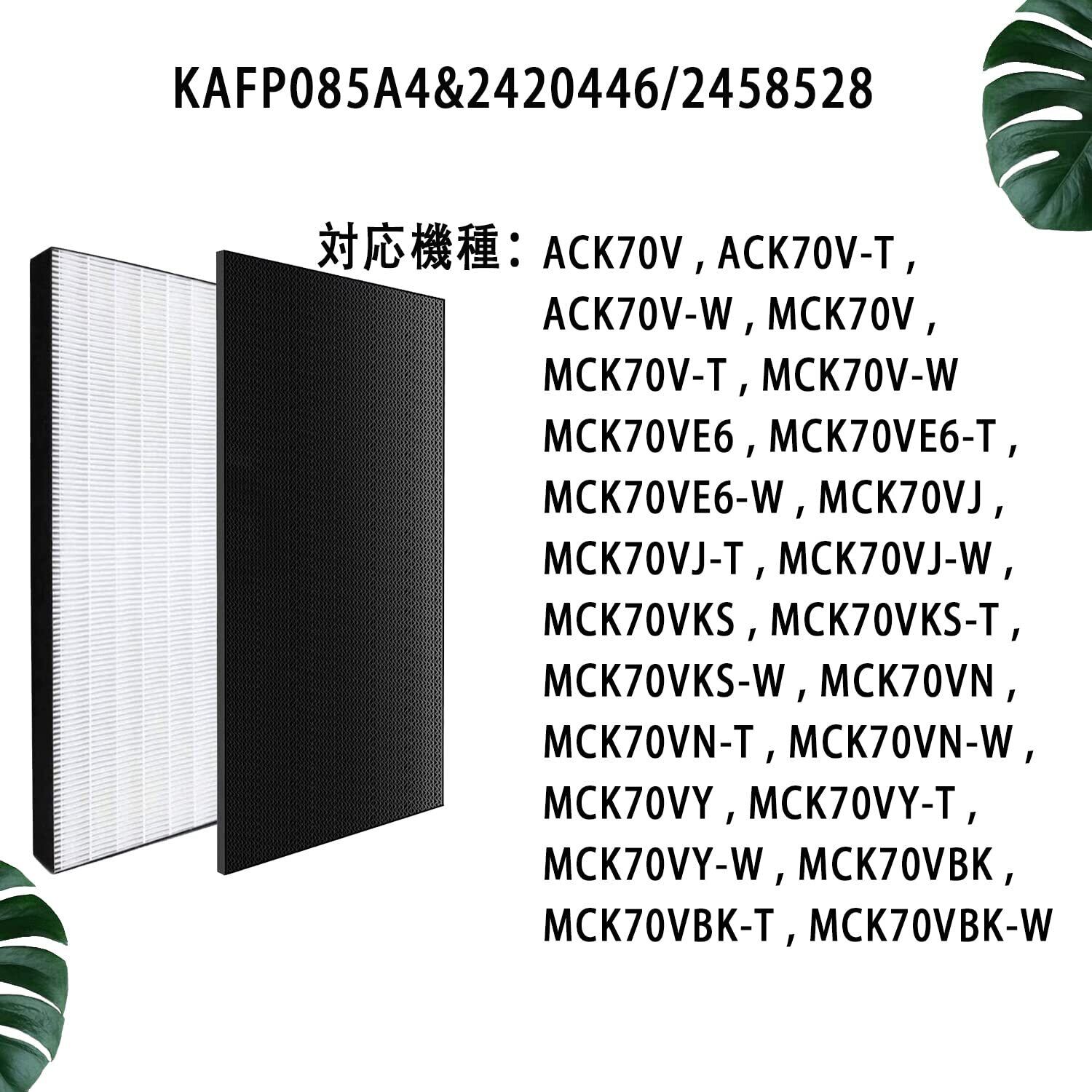 【製品型番】空気清浄機対応 交換用フィルターセット 集塵HEPAフィルター KAFP085A4(1枚) + 脱臭フィルター 2420446 / 2458528(1枚)空気清浄機交換用フィルターセット 合計2枚入り 互換品(非純正)。