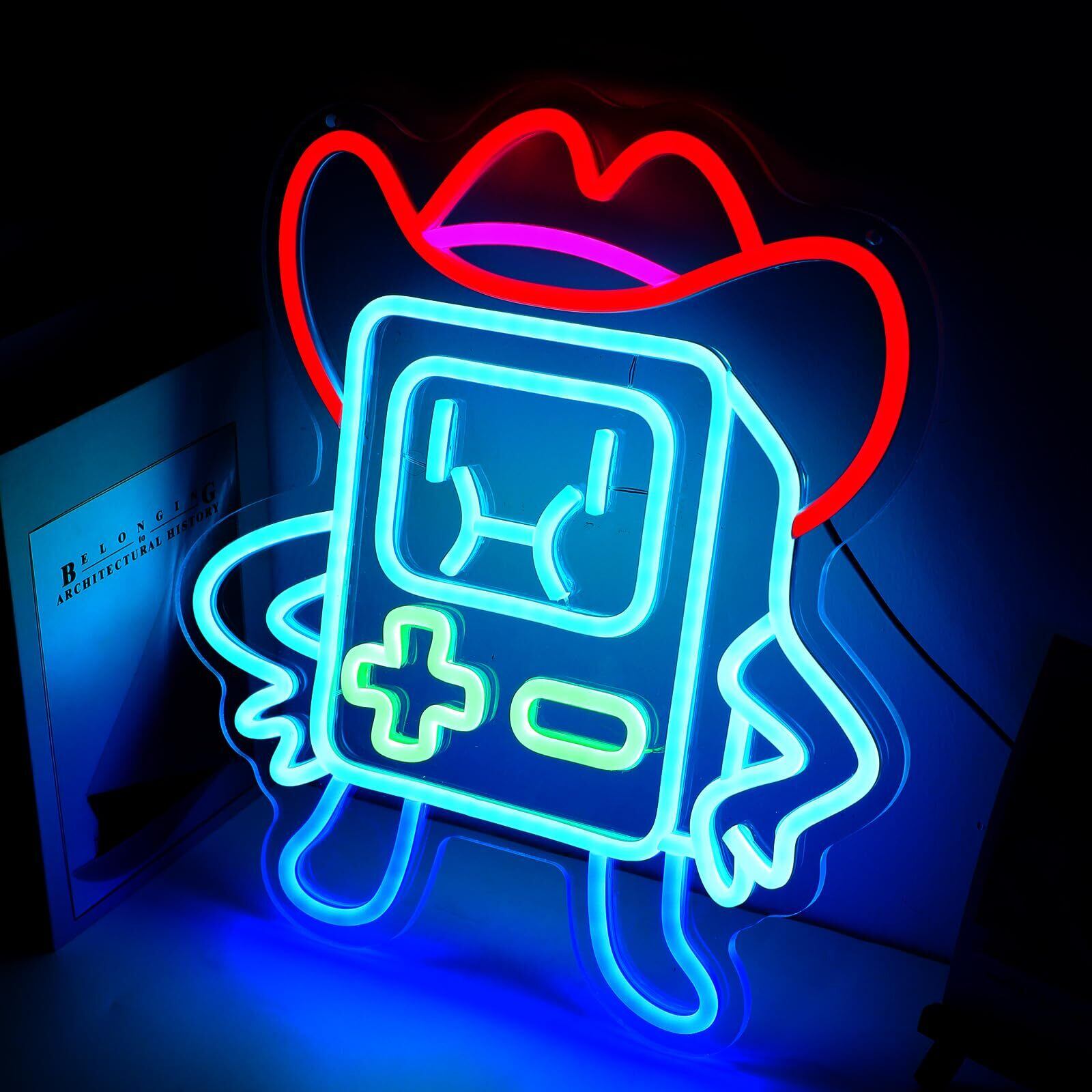 ENUOLI ネオンサイン、ネオンライト、ネオン管、ゲームロボット、調光可能、壁掛け、取付簡単、インテリア、USB給電、省エネ、誕生日プレゼント、男の子の部屋、ゲーム室装飾、ゲームルーム、バー、店舗