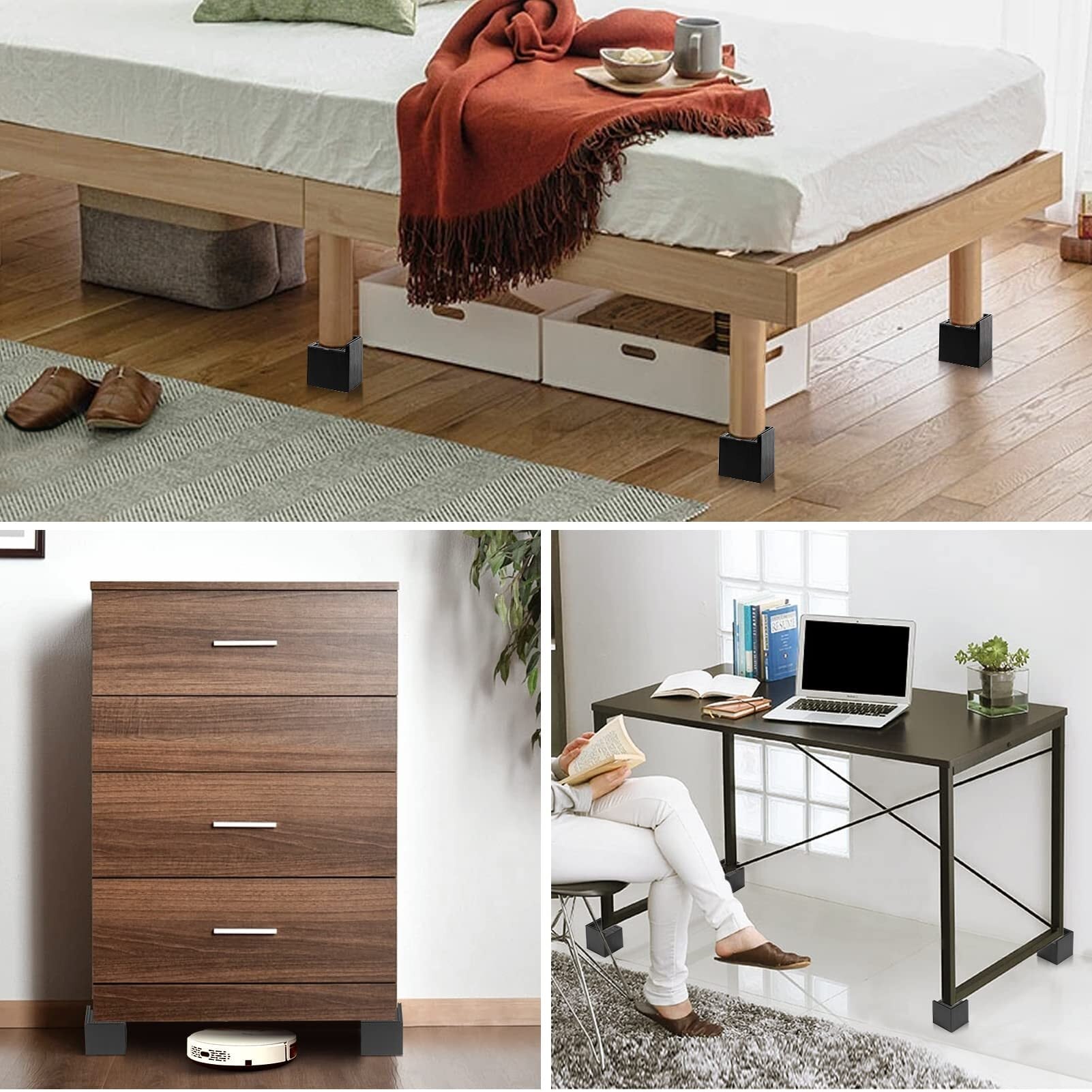 【高さ調節】様々な家具の高さを簡単に調節できます。角脚、丸脚、楕円の脚にもさらに、脚がない場合にも使用できます。二つならべて使用する場合は15×15cmまでの継ぎ脚にも使用でき、大型家具や家電にも最適です。