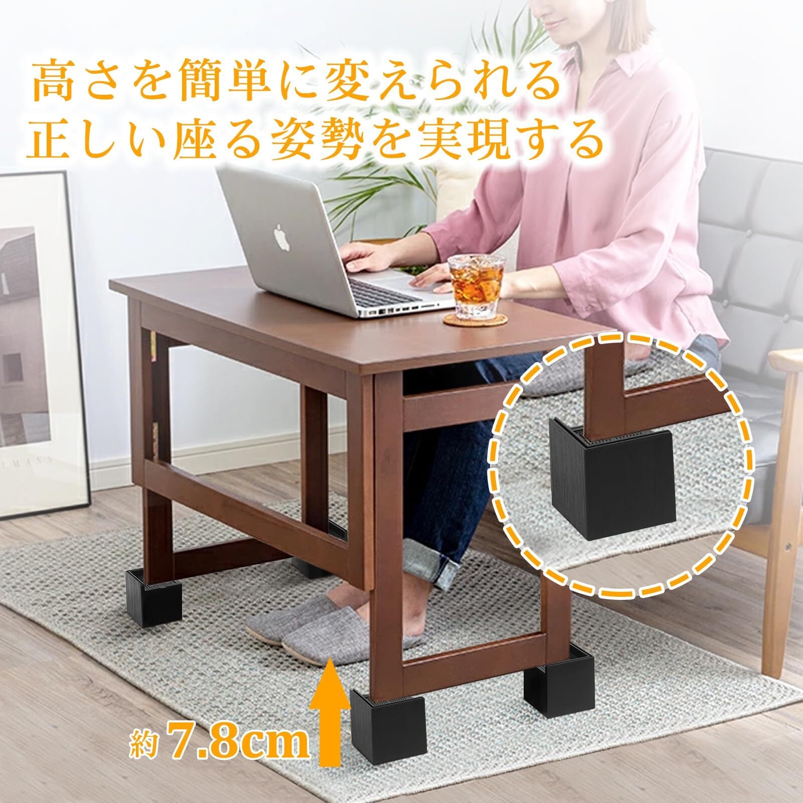 継ぎ脚 高さ調節 脚 底上げ 延長脚 アジャスター ベッド・テーブル・ソファ・机・こたつ 高さを上げる足 高さ調整 高さ上げる 4個セット テーブル脚台 高さ調整 暖房器具 (耐荷重1000kg) ブラック 高さ7.8cm